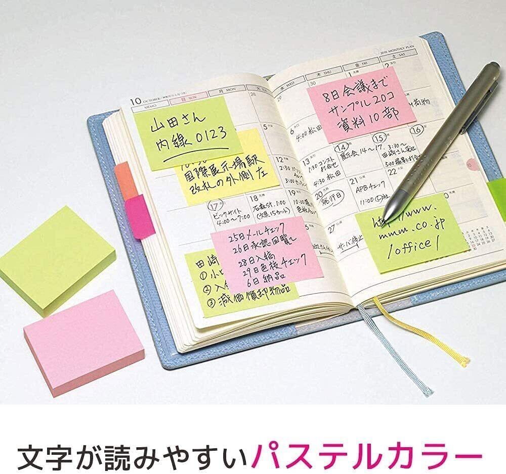 【メモがはっきり見える、優しいパステルカラー】柔らかな色合いのパステルカラーで、書いてある文字がくっきりと読みやすい!