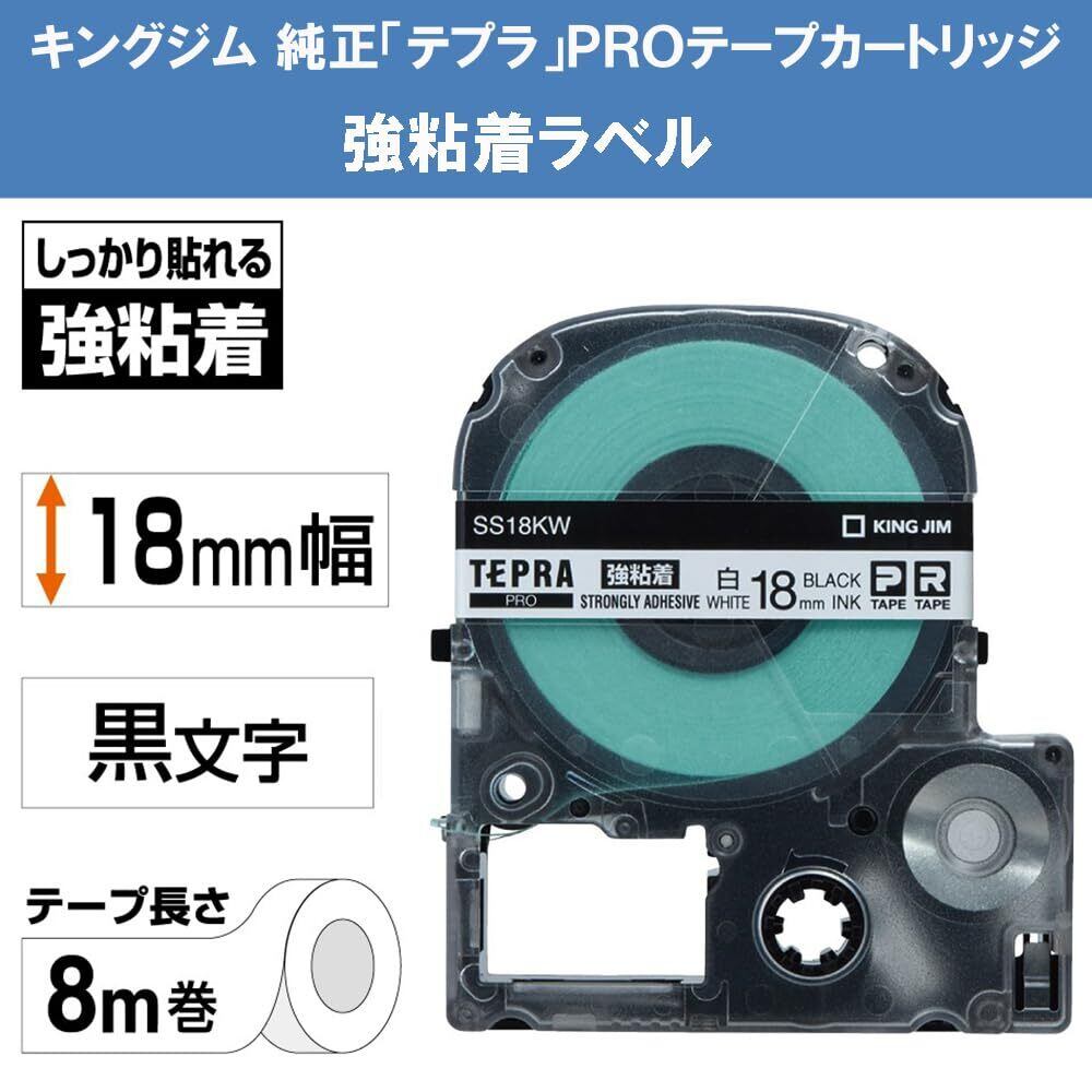 【純正】 キングジム(Kingjim) テプラPROテープカートリッジ 強粘着 18mm 白ラベル/黒文字 長さ8m SS18KW