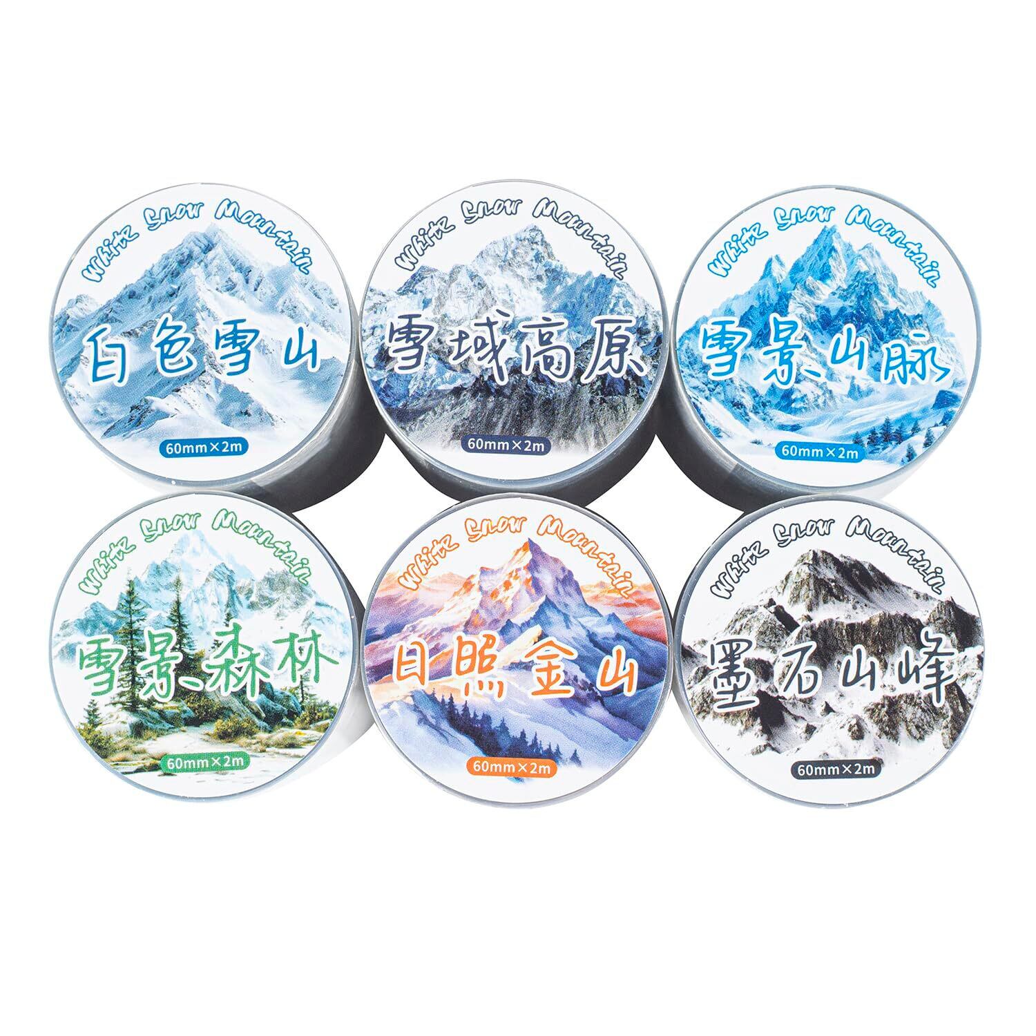 6個 マスキングテープ かわいいロレトロ 雪を頂いた峰々透明な耐水性 インク PET 粘着 テープ 広幅 DIY おしゃれ マステ シール (baixueshan)