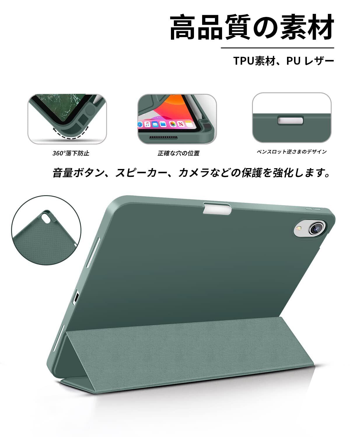 Aoub iPad Air 11 インチ ケース M3/M2 2025/2024 iPad Air 第5/4世代 カバー 2022/2020年 10.9インチ Pencil Proペン収納 Apple Pencil2 ワイヤレス充電対応 オートスリープ/ウェイク機能対応 ソフト TPU 薄型 軽量 耐衝撃 三つ折りスタンド(パイングリーン)