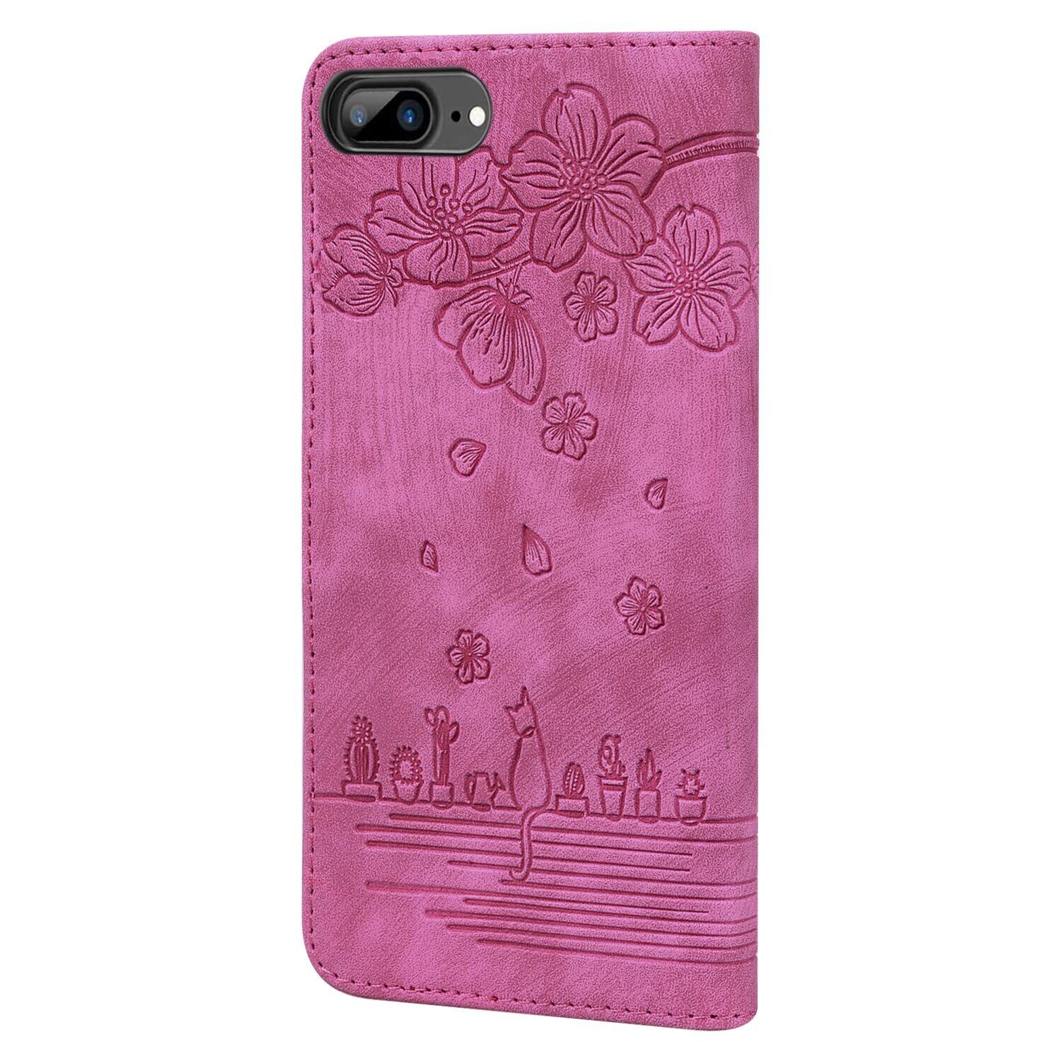 Torske iPhone 8 Plus ケース 手帳型 さくら柄 iPhone8plus・7plus iPhone6splus・6plus 用カバー アイフォン7 プラス ケース 油絵デザイン ヴィンテージカラー 快適な質感 財布型 iPhone 6s Plus スマホケース カード収納あり 使う便利性 全面保護 iPhone 8plus 携帯ケース 5.5インチ ローズレッド