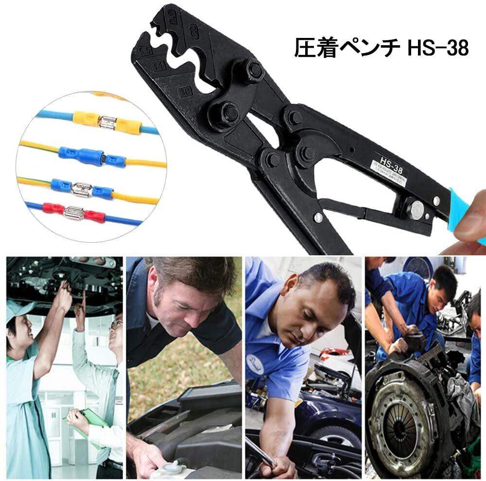 圧着ペンチ 圧着電工ペンチ 裸圧着端子かしめ工具 裸圧着スリーブ 圧着工具 圧着端子 電工ペンチ ペンチ 対応 HS-38/5.5-38㎟