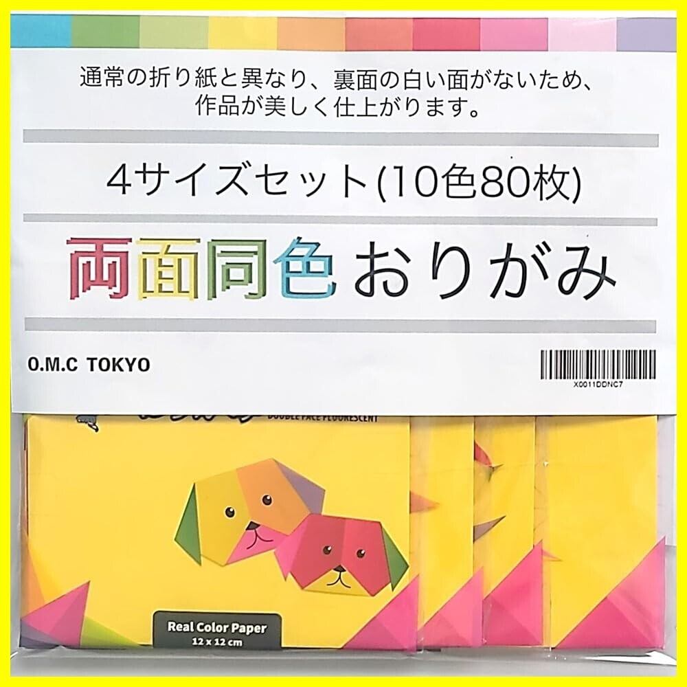 O.M.C TOKYO アソートパック 折り紙 両面 同色 80枚 (10色×2枚×4サイズ組) アソートおりがみ サイズいろいろ