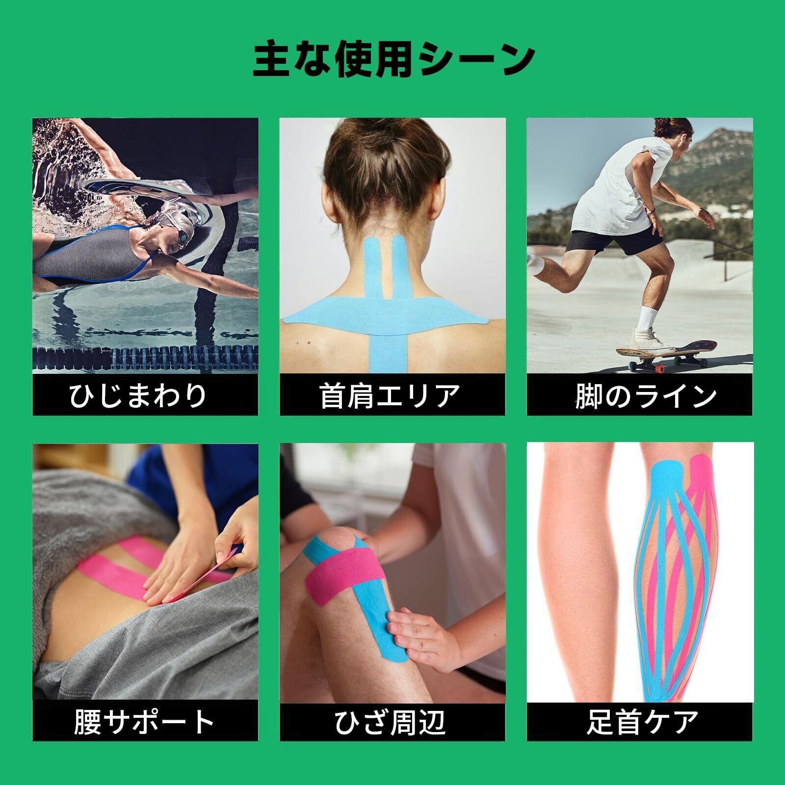 キネシオロジーテープ 伸縮タイプ 50mm×5m|防水加工・低刺激粘着剤|スポーツ用テーピングテープ 膝・腰・手首サポート|通気性メッシュ構造で長時間快適