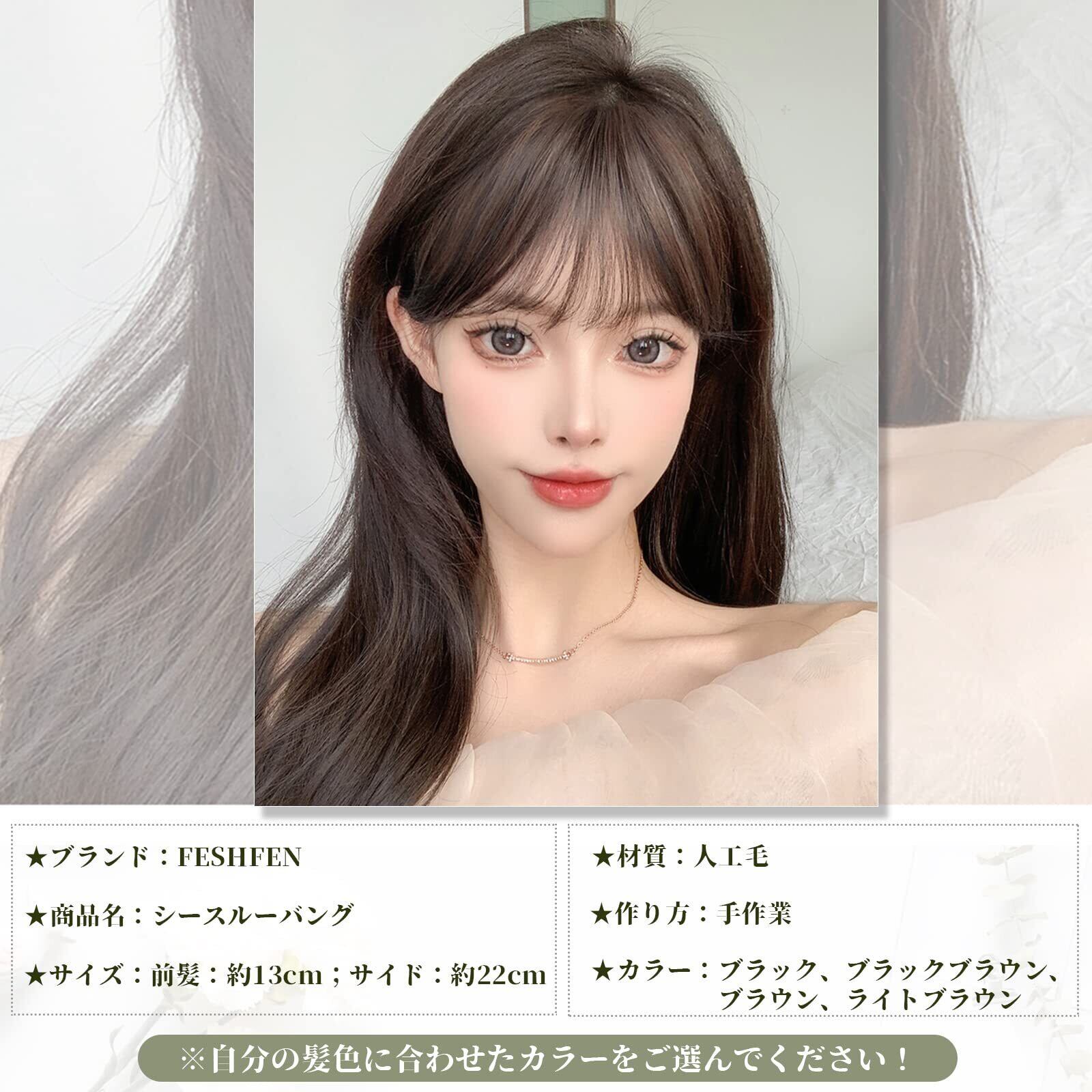 FESHFEN 前髪ウィッグ 部分ウィッグ コスプレ用 総手植え レディース エクステ ポイントウィッグ ふんわり 超薄型 前髪 もみあげ付きウィッグ ぱっつん 小顔 ワンタッチ 仮装 日常 超自然 耐熱 ブラウン(サイドあり)