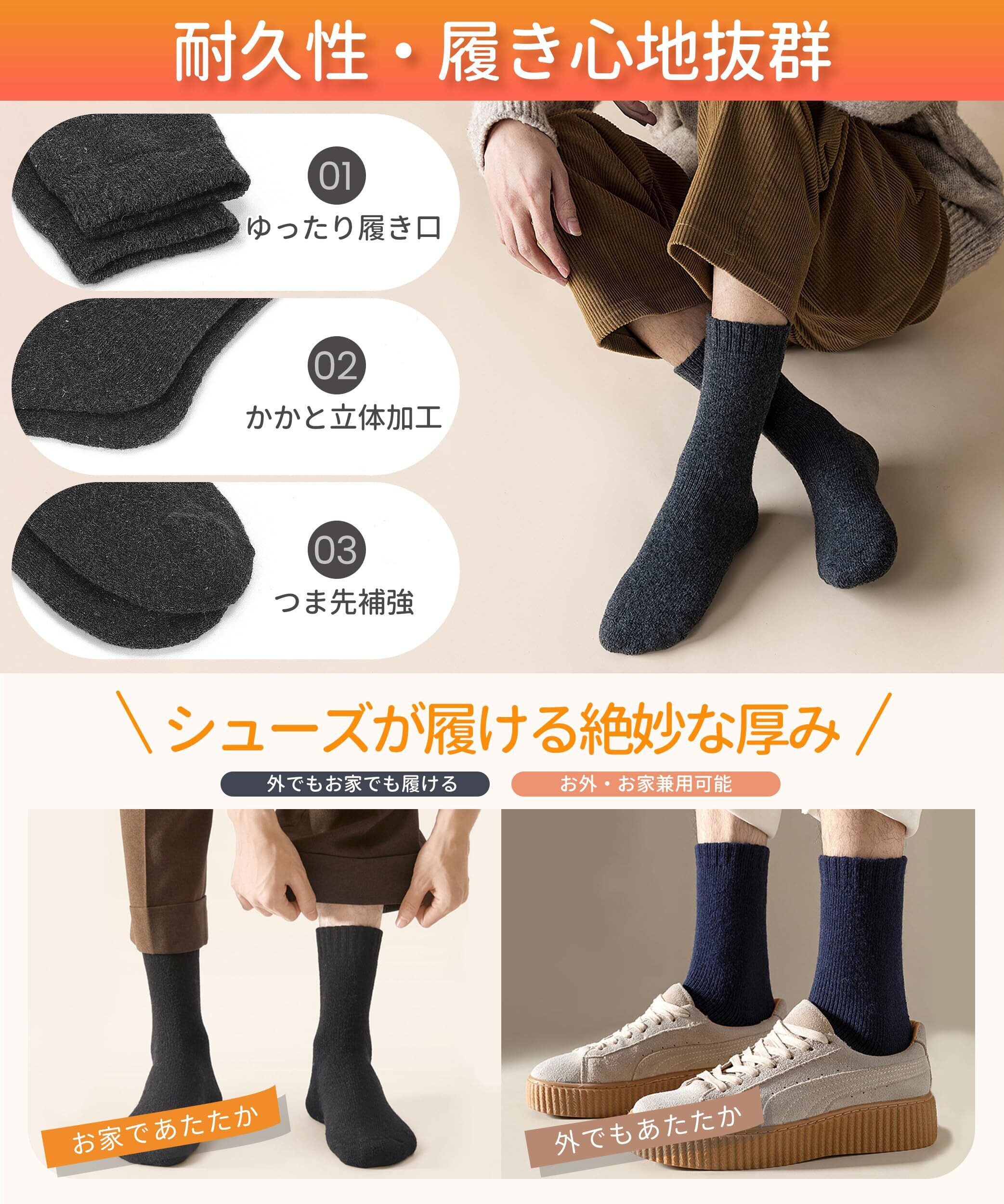 [Lavento] 靴下 メンズ ソックス 冬 厚手 【こたつのように暖かい・保暖厚手裏パイル】 防寒靴下 暖かい靴下 ウールソックス 防寒 保温 消臭 耐久性 伸縮性 室内 アウトドア スキー スポーツ 25-29㎝