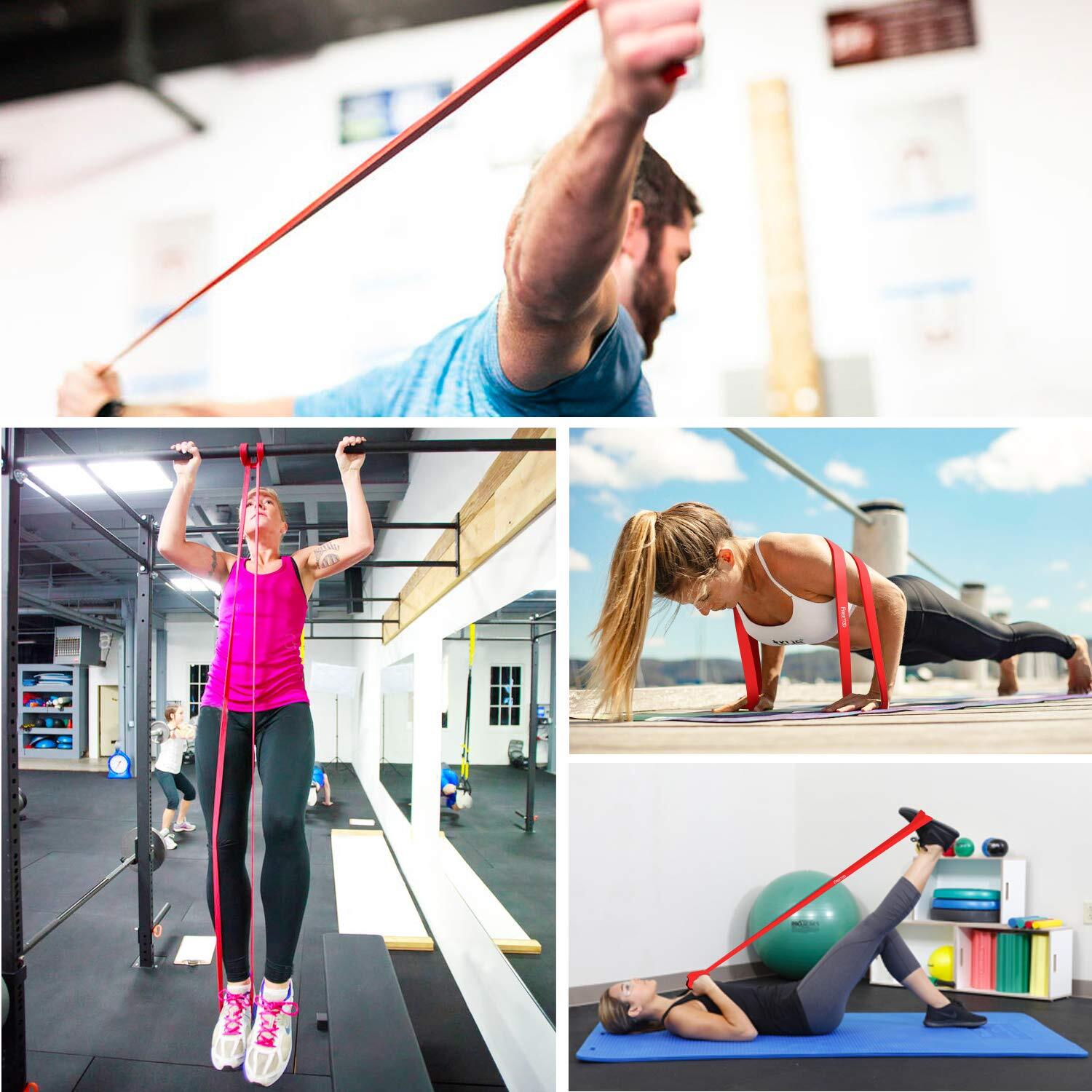 FREETOO フィットネスチューブ エクササイズバンド【最新強化版】 トレーニングチューブ 天然ゴム 肉体改造 機器 男女兼用 筋力トレーニング リンフティグ筋肉 レッド