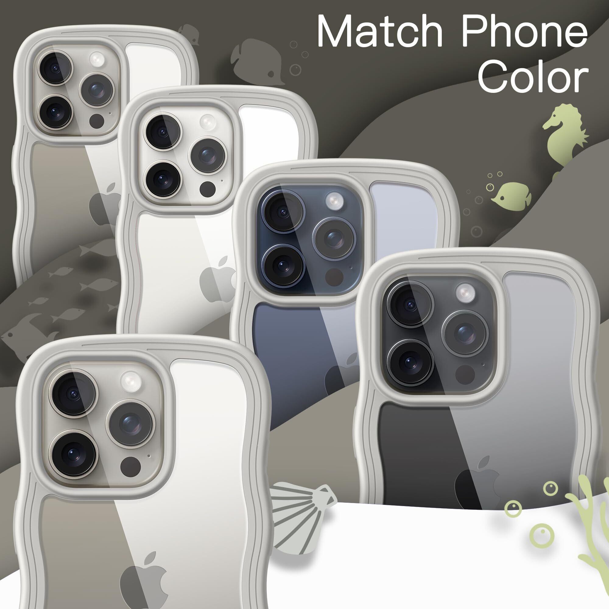 JETech iPhone 15 Pro 6.1インチ用 かわいい ケース 波状フレーム うねうね 耐衝撃 スマホカバー 女性用 女子向け クリア ハードPCバック (ナチュラルチタニウム)