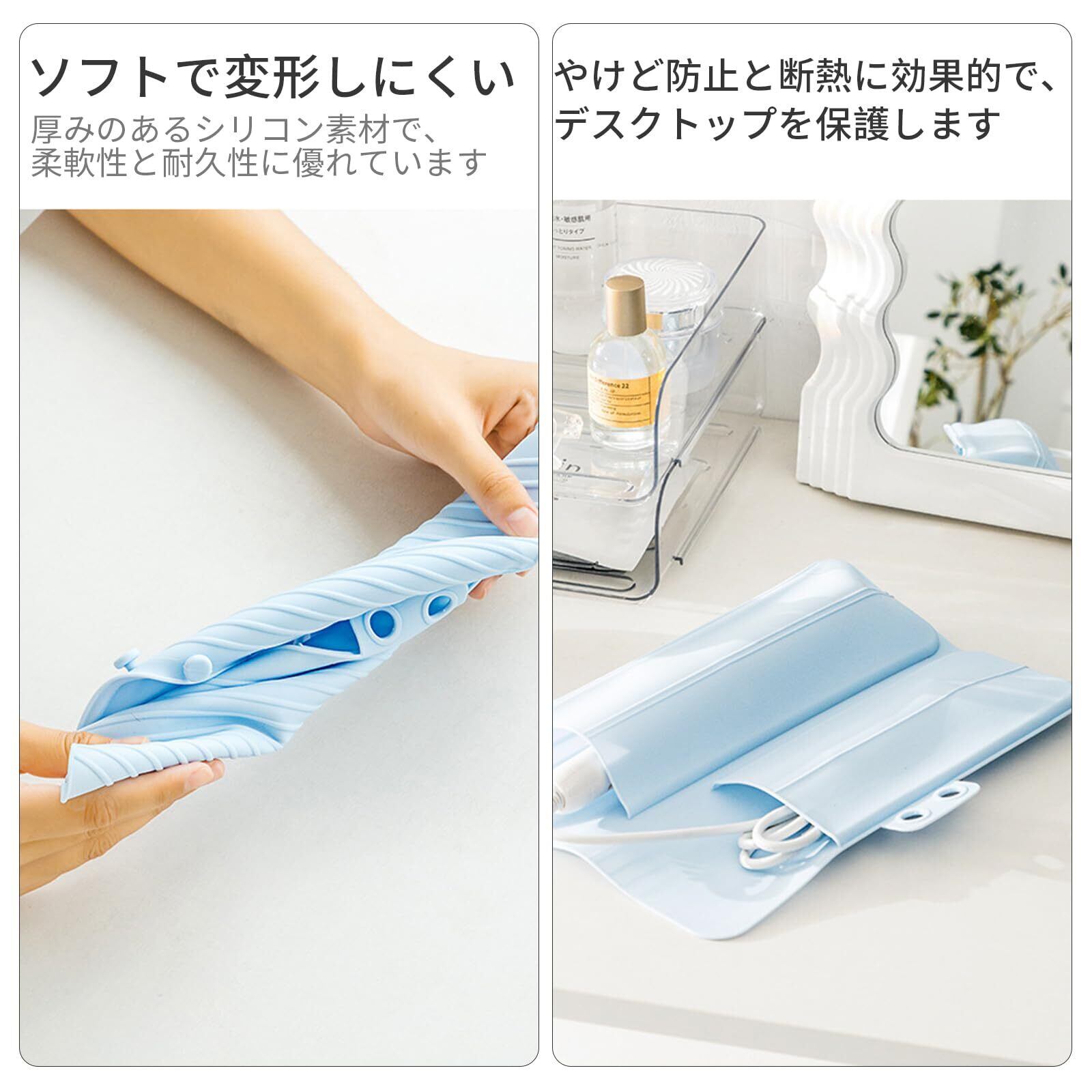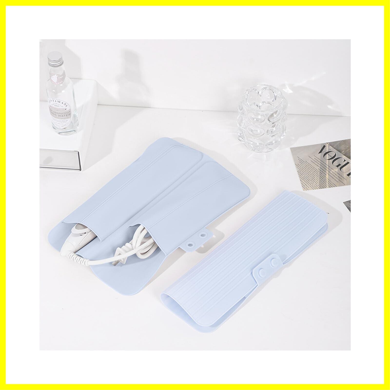 aninako ポケット付き 耐熱ヘアアイロンマット ヘアアイロンケース ヘアアイロン ポーチ ヘアアイロン 収納 耐熱 シリコンマットポーチ ヘアスタイリングツール、ストレートヘアアイロン、フラットアイロンに適しています 耐熱温度300℃ ヘアアイロンを2本置 トラベルポーチ収納 29x20cm(ブルー)