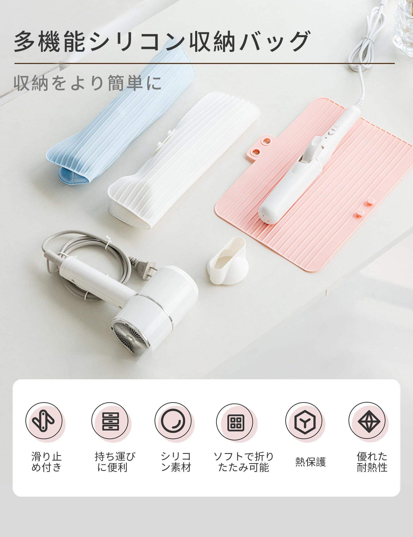 【旅行や出張に便利】ヘアアイロンポーチは折りたたみ式で持ち運びに便利です。 開いて使えば ヘアアイロン用耐熱マット になるし、使い終わるとヘアアイロンの耐熱バッグとして使えます。熱くなったヘアスタイリングツールを収納したり、ヘアアイロンケースに収納したりするのに最適です。