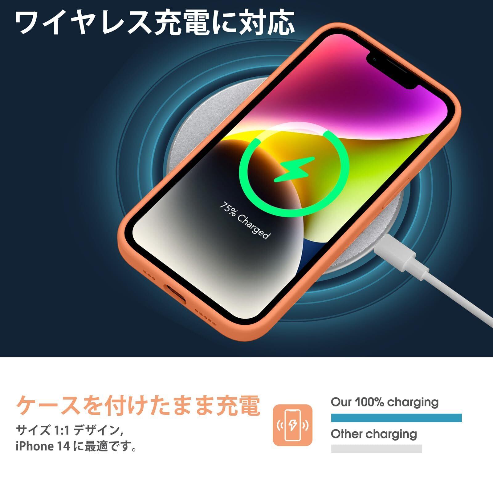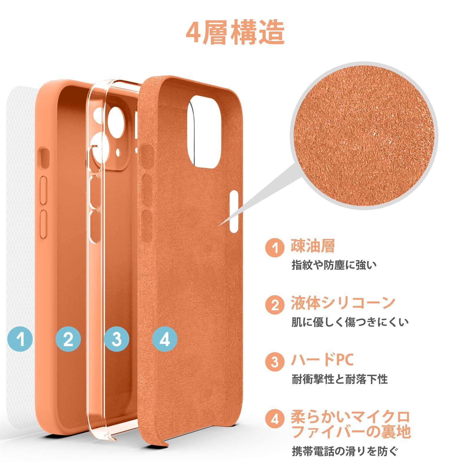 Supdeal iPhone 14 ケース 対応液体シリコン [耐衝撃] [柔軟TPU液体シリコン] [ソフトタッチ] [レンズの全面保護] [指紋防止] [落下防止] [滑り防止] 軽量 4層保護 アイフォン 14 スマホカバー 6.1インチ(オレンジ)
