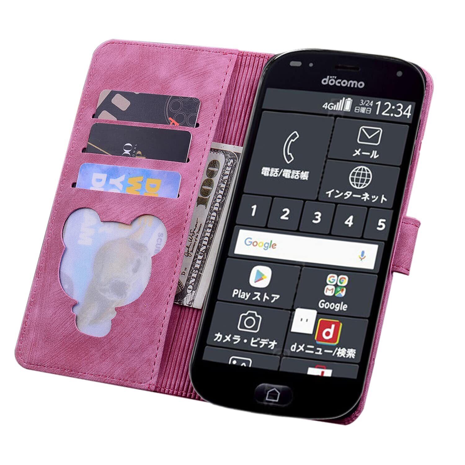 に適合する 4.7インチのEasy Phone F-42A/F-01L (らくらくスマートフォン F-42A らくらくスマートフォン me F-01L)専用手帳型ケース, さくら模様。対応機種を間違いないようにご購入お願い申し上げます。