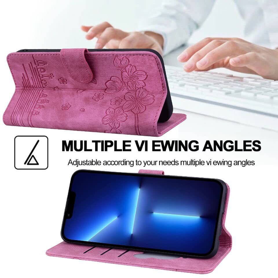 Torskeに適合する Easy Phone F-42A ケース 手帳型 用の Easy Phone F-01L カバー さくら柄 に適合する らくらくスマートフォン F-42A ケース 油絵デザイン ヴィンテージカラー 快適な質感 財布型 用の F-42Aケース カード収納あり 使う便利性 全面保護 向けの らくらくスマートフォン me F-01L 携帯ケース 4.7インチ ローズレッド