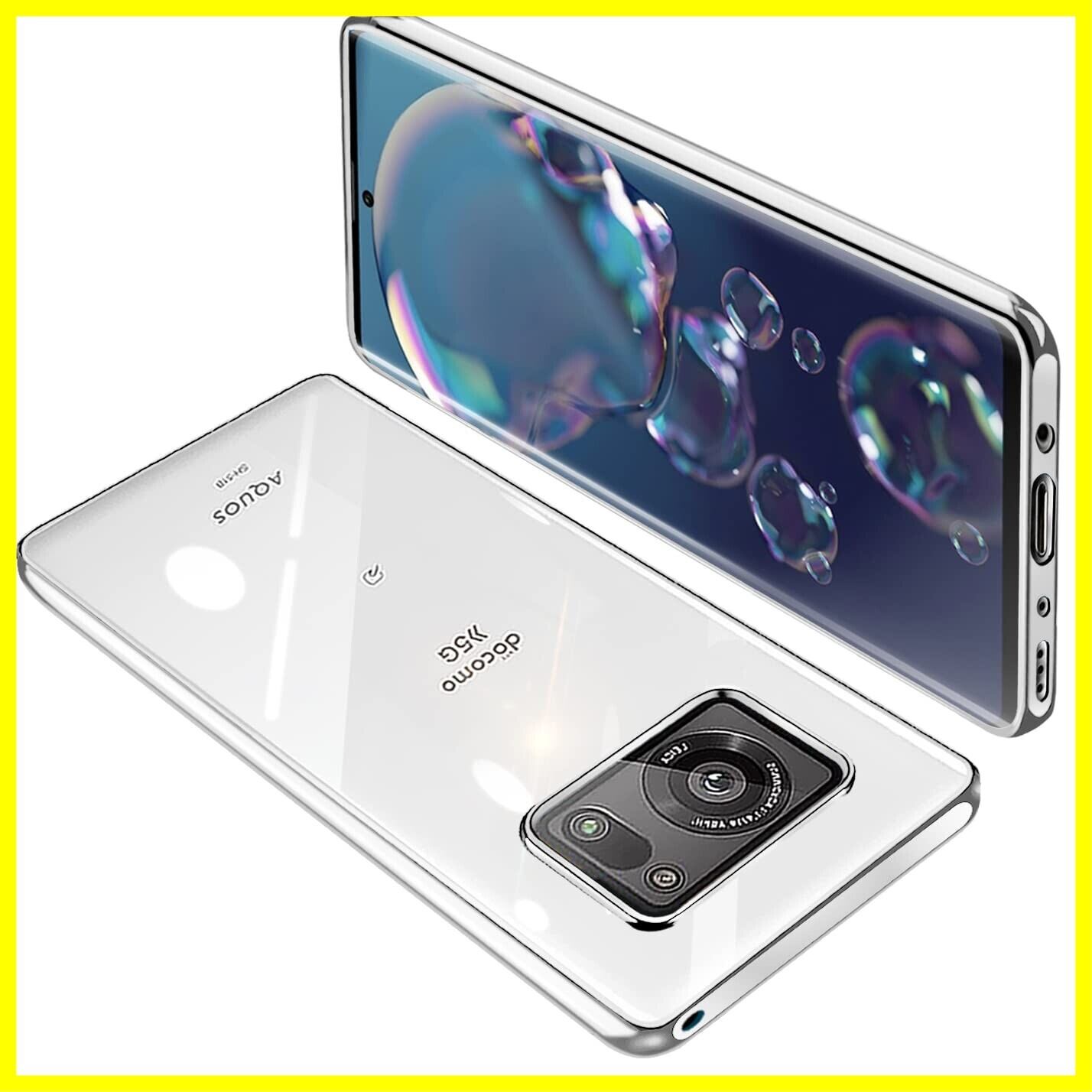 AQUOS R6 ケース SH-51B SH-M22 クリア 透明 ガバー スマホケース 耐衝撃 TPU 薄型 シリコン スリム 擦り傷防止 黄変防止 メッキ加工 ストラップホール付き(シルバー)