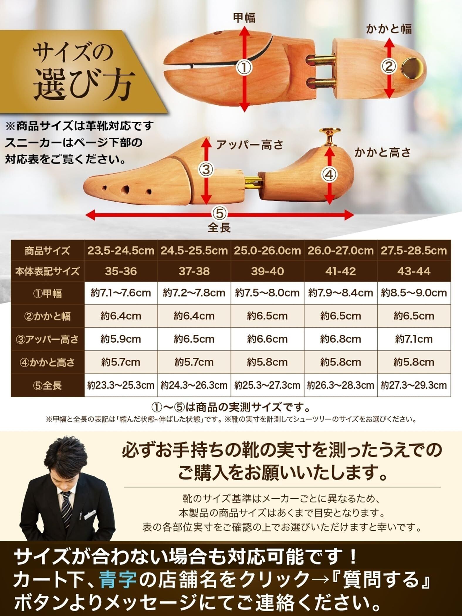 長さと幅はバネによる伸縮式を採用。適合サイズ間で調整可能です。※サイズ詳細は画像のサイズ表をご確認ください。※バネが関係する部位は伸縮の分、値に幅を持たせてあります。値は実測の平均値を掲載しておりますが、商品は全てハンドメイドで作られておりますため、数値より若干の誤差がある場合がございます。予めご了承くださいませ。