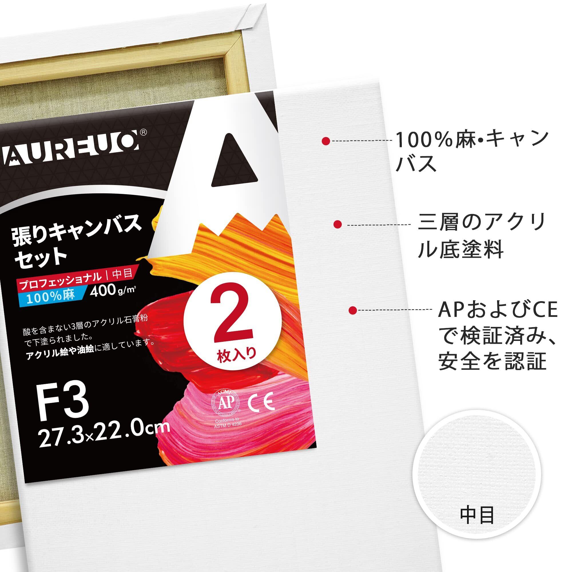 AUREUO 張りキャンバス セット F4 (33.3cmX24.2cm) 中目 全麻 2枚 リネン 専門の絵画用具 芸術絵創作 現代油絵 美術装飾 水彩画・油絵画・アクリル兼用
