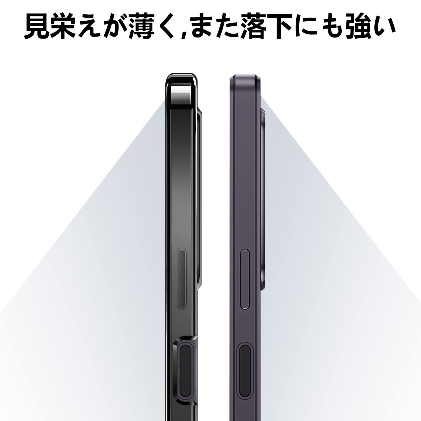 【360°全面保護】前面と背面をデバイスより高く設計し、液晶画面とカメラレンズをしっかり保護します。ケースの縁は、画面やレンズよりも0.5mm高く設計されています。落下時の衝撃を最大限に吸収することができ、全方位から本体をしっかり守ります。各ボタンも押しやすい立体設計、耐久性を保ちながら押しやすさを実現します。
