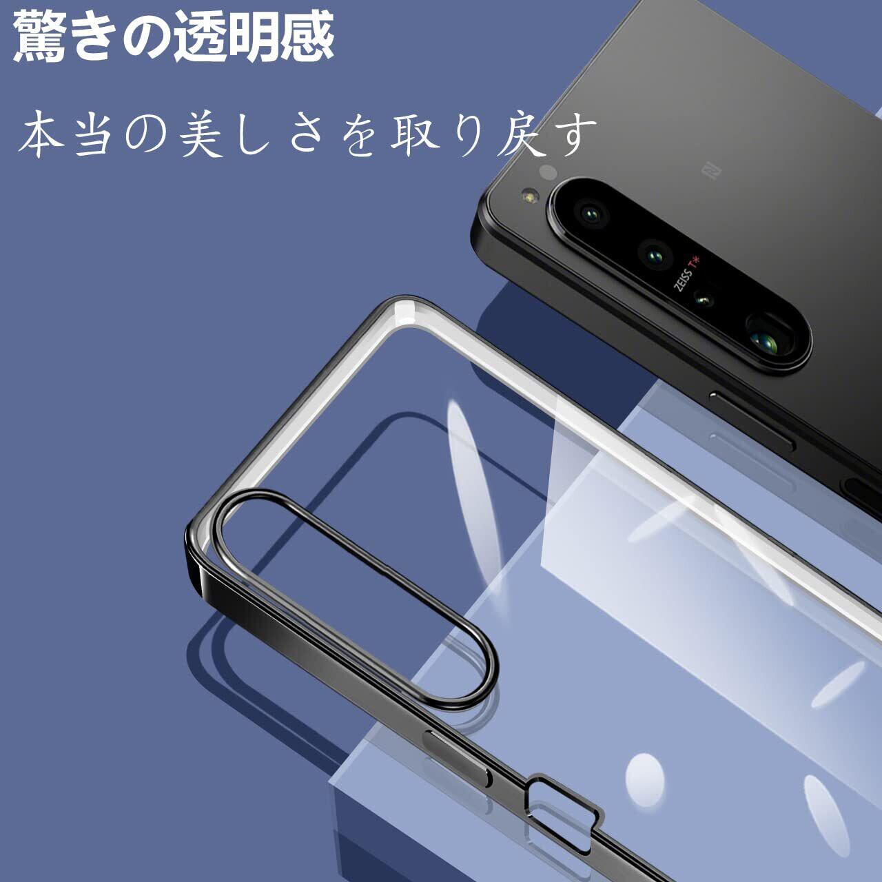 に適合するSony Xperia 1 IV 用のケース SO-51C SOG06 透明 クリア エクスペリア1IV ガバー スマホケース 耐衝撃 TPU 薄型 シリコン スリム 擦り傷防止 黄変防止 メッキ加工 ストラップホール付き(ブラック)