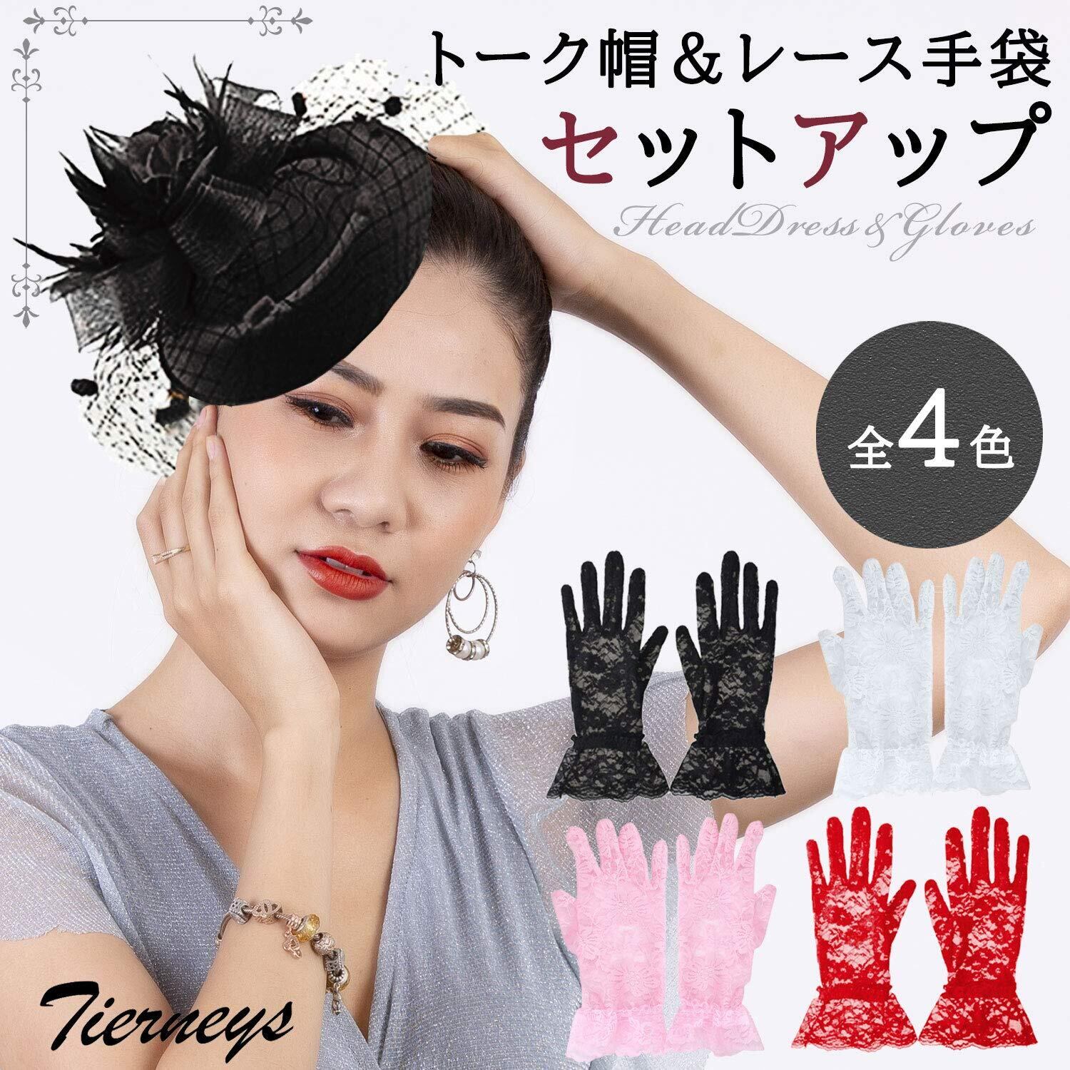 [Tierneys] ティアニーズ トーク帽 カクテルハット ヘッドドレス レディース ハット チュール 付き 手袋 レースグローブ 冠婚葬祭 パーティ 二次会 欧風