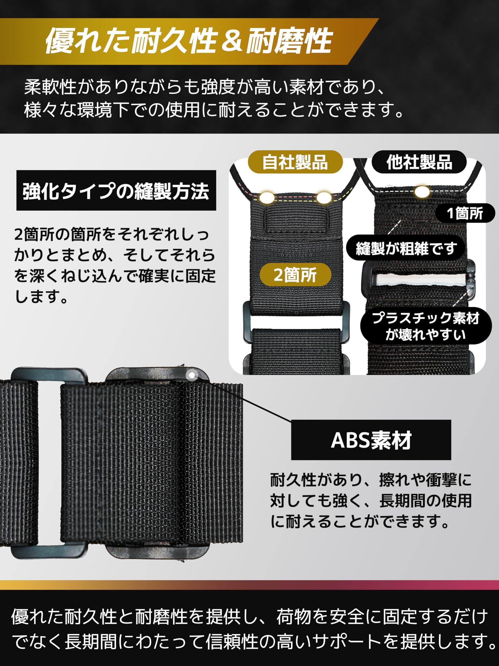 【耐久性】留めベルトはナイロン素材と強力ゴムでできており、着脱時の柔軟性、傷付けにくさと軽量化を実現しました!金具をABS樹脂に変更し、耐久性・耐摩耗性があります