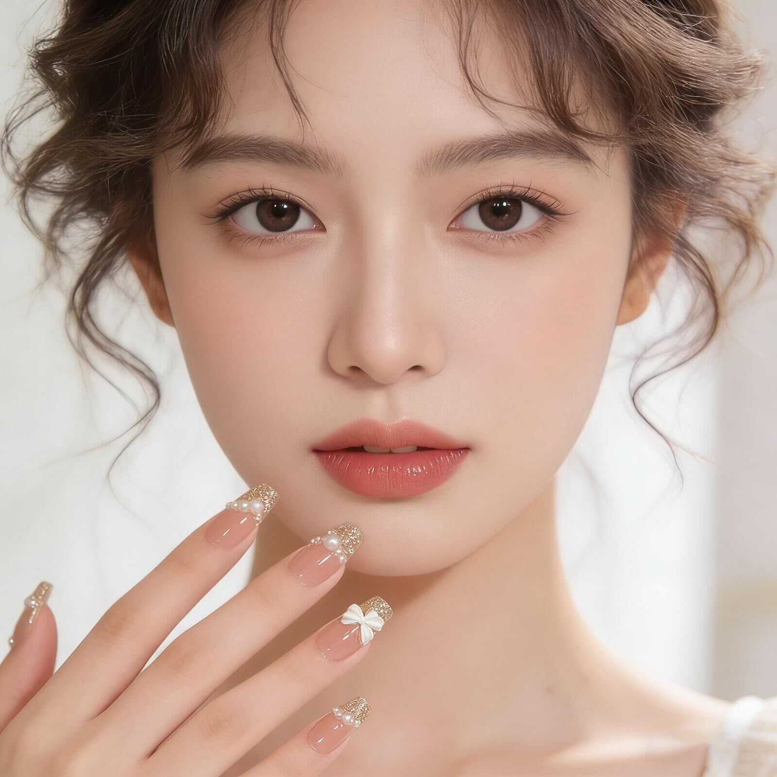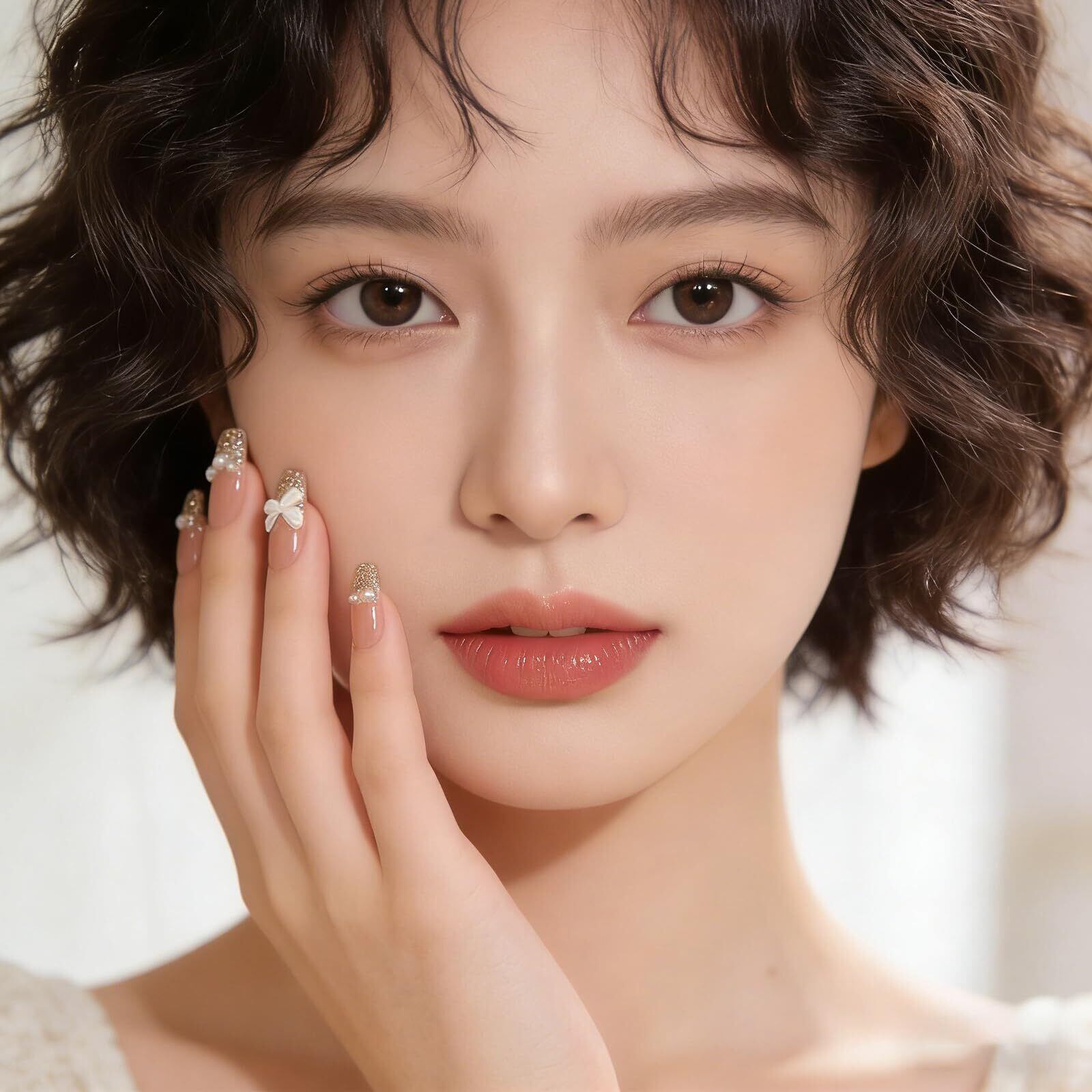 ネイルチップ 24枚入 バレエ ベリーショート 人気 ネイルシール つけ爪 かわいい 付け爪 3D爪 ラウンドチップ ファッション ネイル 結婚式 花嫁ネイル (A19)