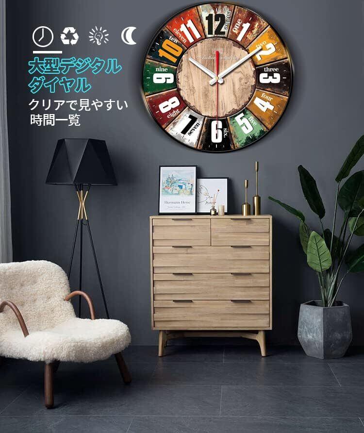 【大きな数字】この壁掛け時計は1-12の大きなアラビア数字、シンプルで実用的、明確で見やすい、大きな数字が時間を読みやすくします。目が悪い人でも見ることができます。