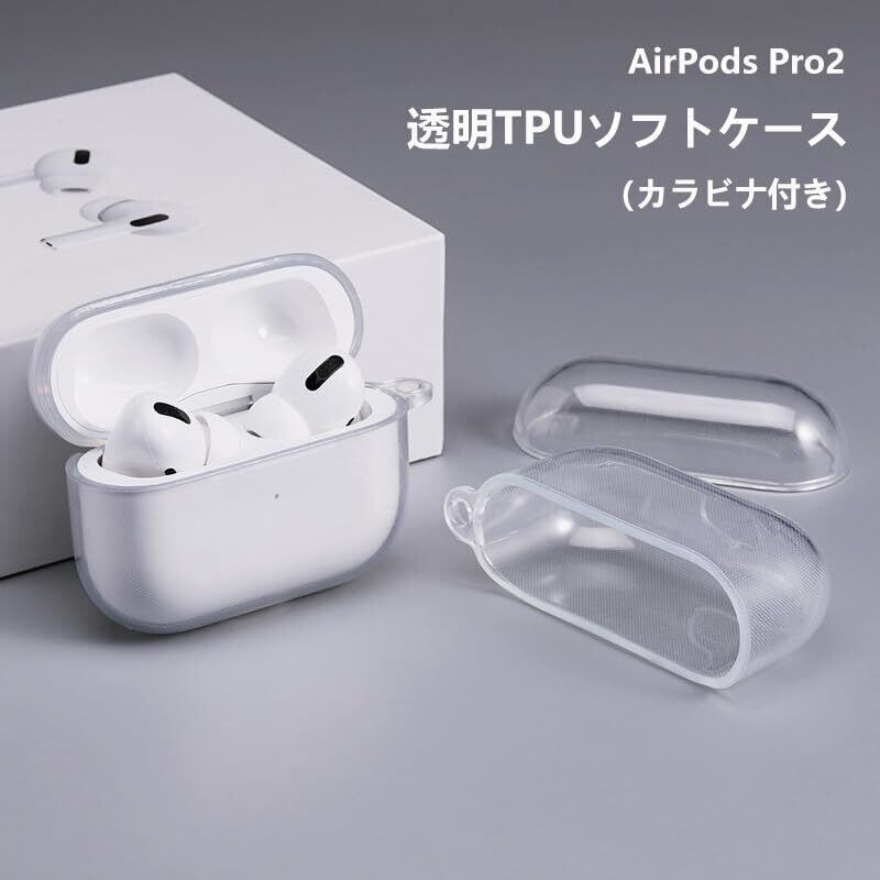 AirPods Pro 2 ケース 透明 エアーポッズプロ 2 用 クリア ケース 全面保護カバー カラビナ付き 紛失防止 TPU ソフト ケース かわいい 傷防止 耐衝撃 AirPodsPro第2世代に適用