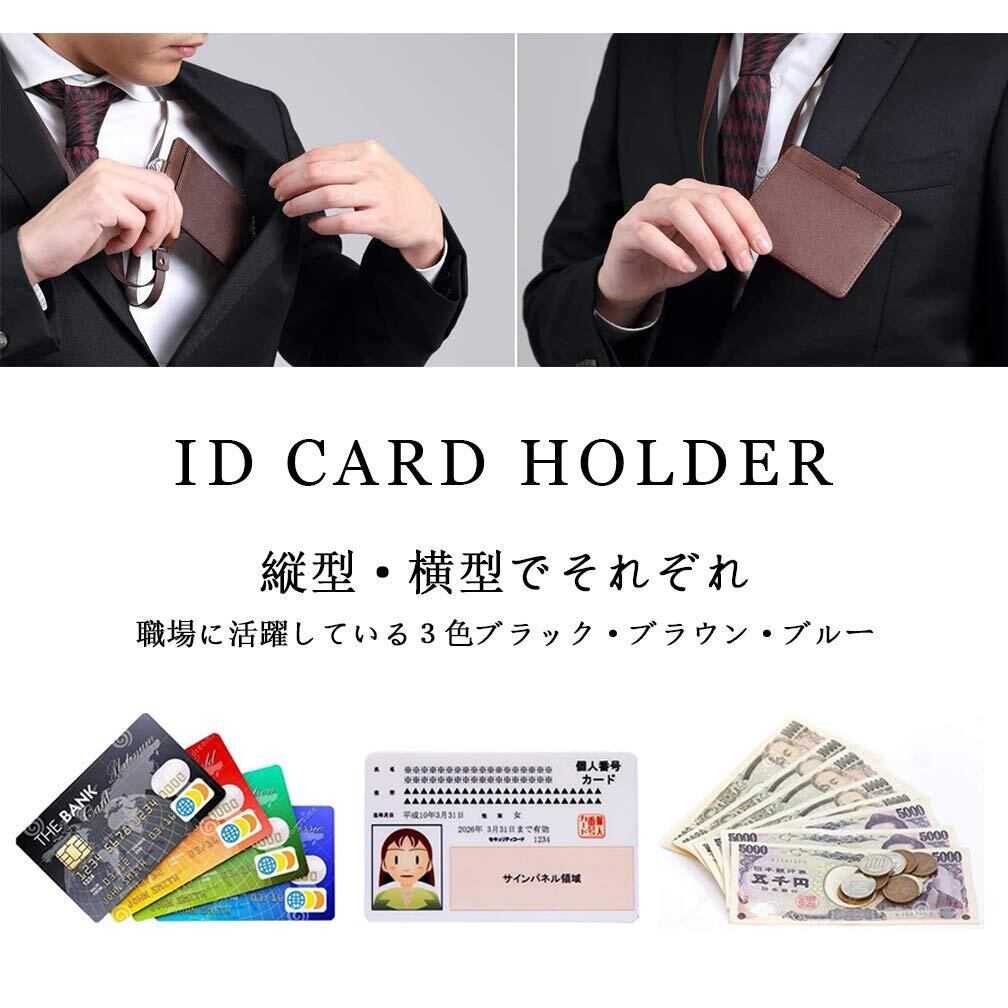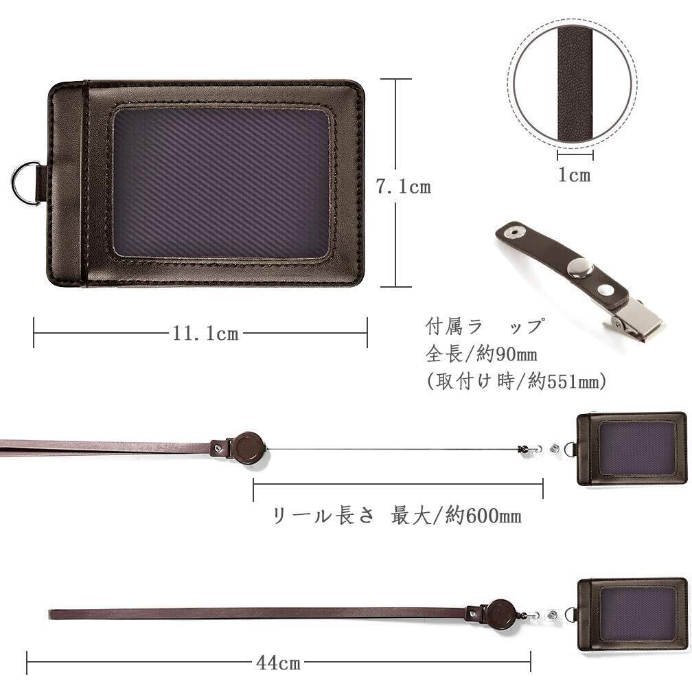 [Viaky] ネームホルダー id カードホルダー レザー 縦型パスケース 伸縮リール式 ネックストラップ バンドクリップ 付き ユニセックス ポケット三つ 社員証 名札 定期入れ ケース