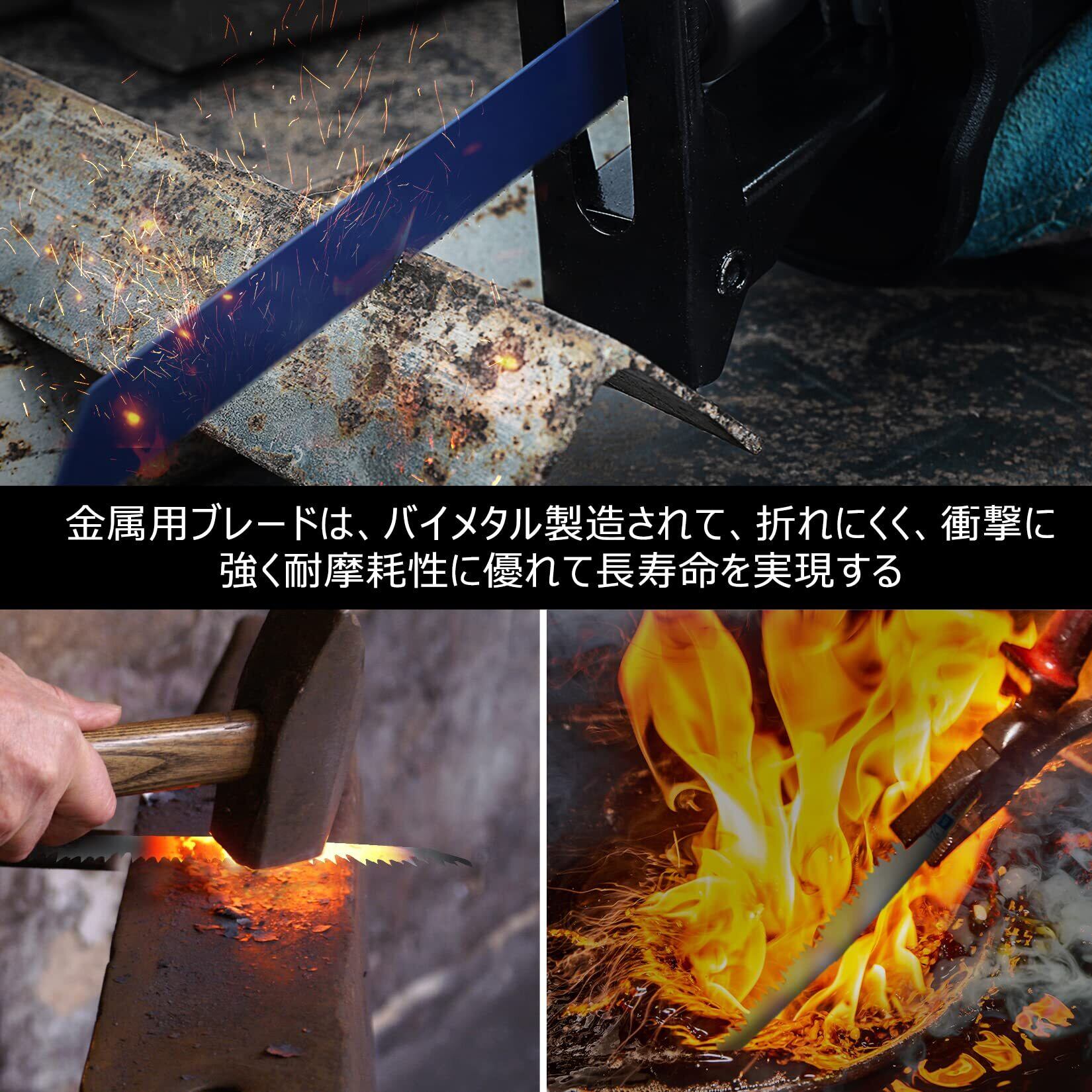 【耐久性素材】金属用レシプロソーブレードセットは、高い耐磨耗性あるバイメタル材質を採用して、切断が速く、耐久性が向上しています。木工用レシプロソー替え刃は、高品質の熱処理されたクロムバナジウム鋼で作られて、耐久性が高め、長寿命を持ってます。