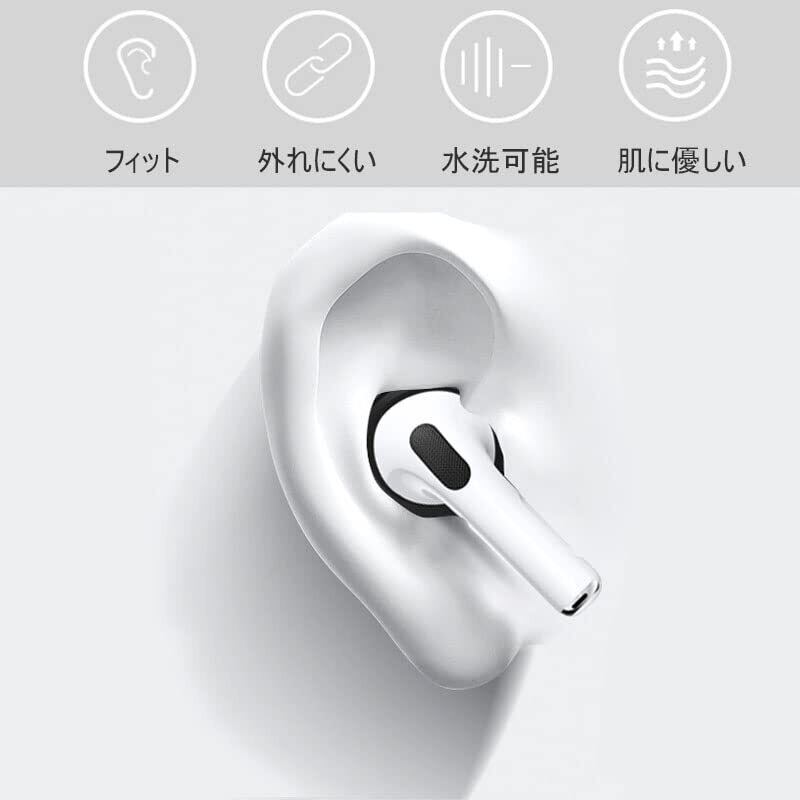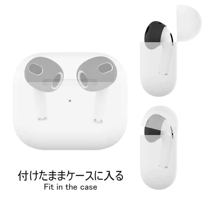 Airpods 3 用 イヤーピース Fit in the case シリコン製 付けたまま充電可能 2021 AirPods(第3世代)対応 イヤホンカバー シリコンカバー 3セット6個 収納ケース付(黒)