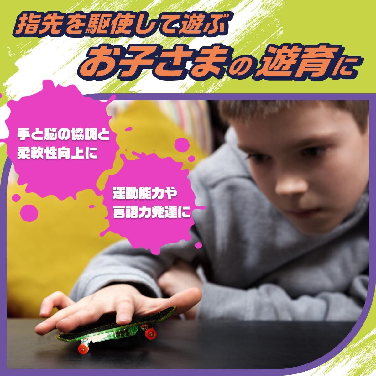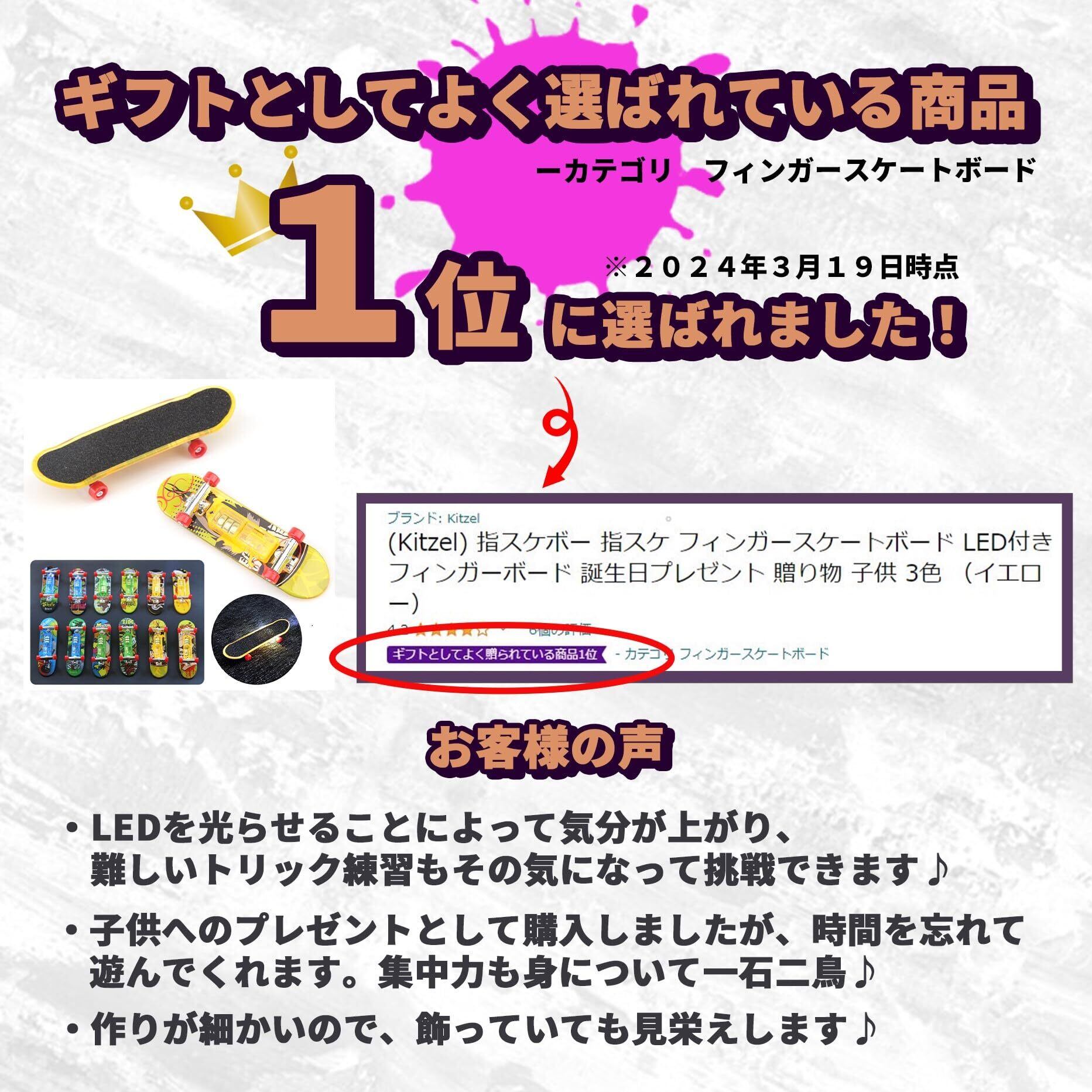 (Kitzel)指スケボー 指スケ フィンガースケートボード LED付き フィンガーボード 誕生日プレゼント 贈り物 子供 イエロー・グリーン2個セット
