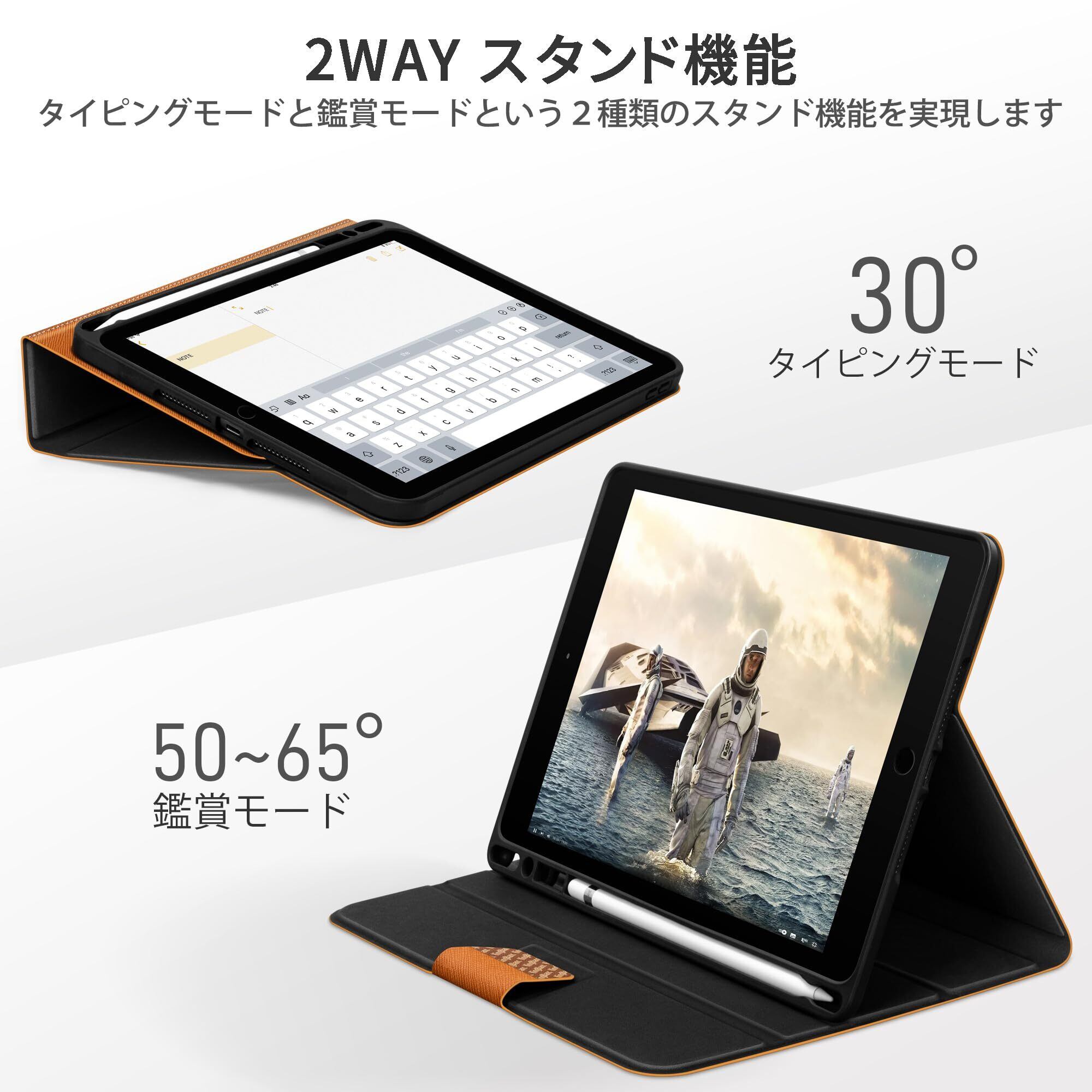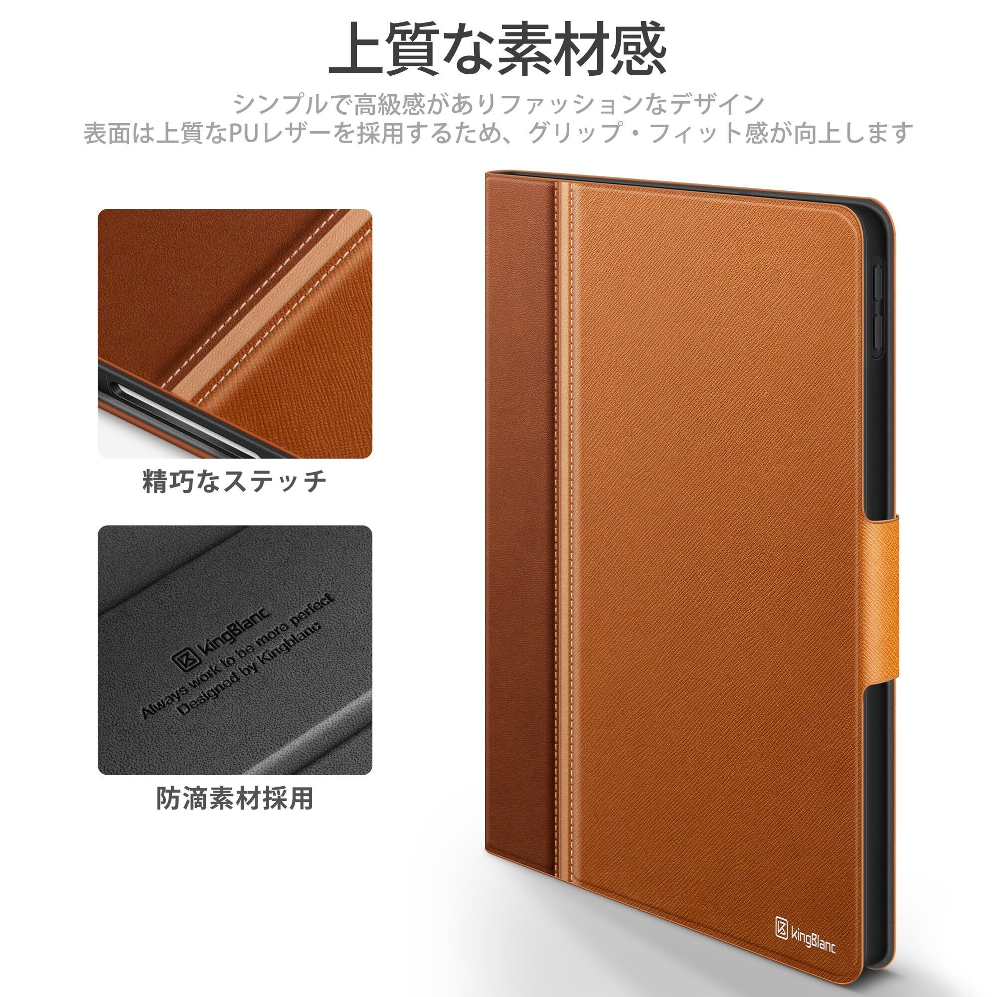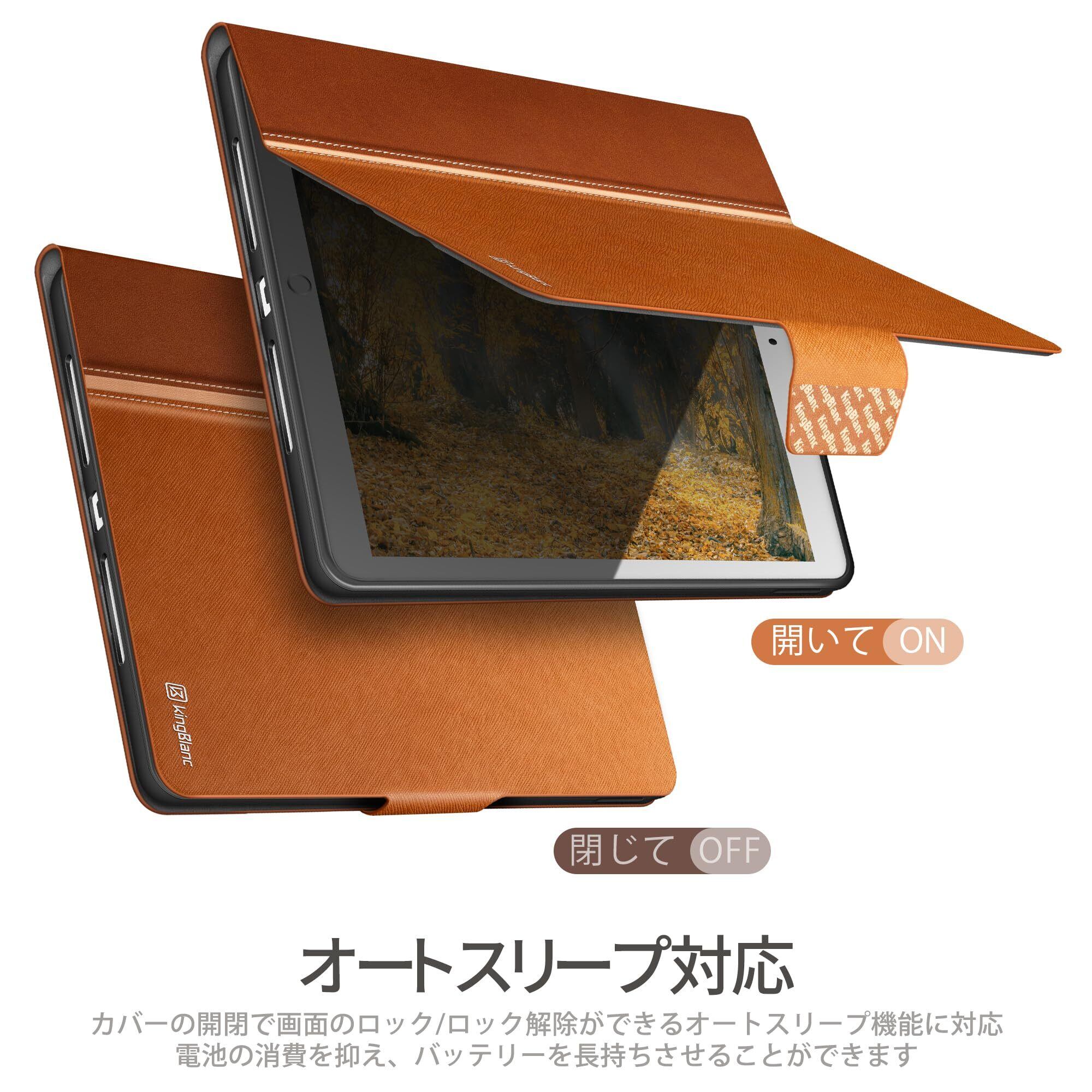 KingBlanc iPad 10.2 ケース 第9世代/第8世代/第7世代 (2021/2020/2019) ケース ペン収納可能 手帳型 全面保護 高級PUレザー製 オートスリープ・スタンド機能付き 指紋付きにくい 耐衝撃 スマートカバー, ブラウン