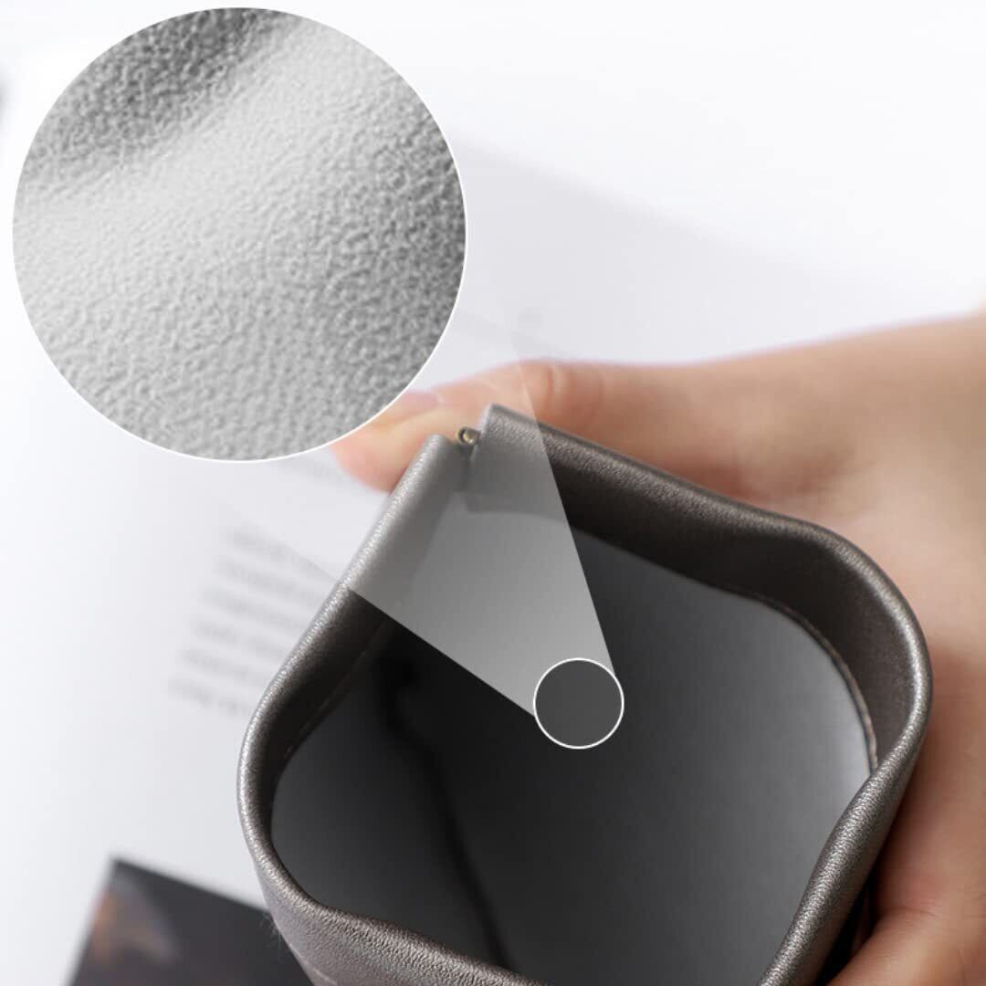 手のひらサイズのPUレザーポーチ。大切ねジュエリーなどを入れ、保管するのに最適です。コンパクト設計になるので、バックなどに入れて旅行や普段の外出など持ち運びに便利です。高品質のPUレザー製のポーチになりますので、大切なジュエリーなどをキズなどの損傷から保護することができます。出し入れしやすい大口の取り出し口!ワンタッチで開閉するので、簡単に物を出し入れすることができ、しっかりと閉まるので、バックの中で散乱することもありません。