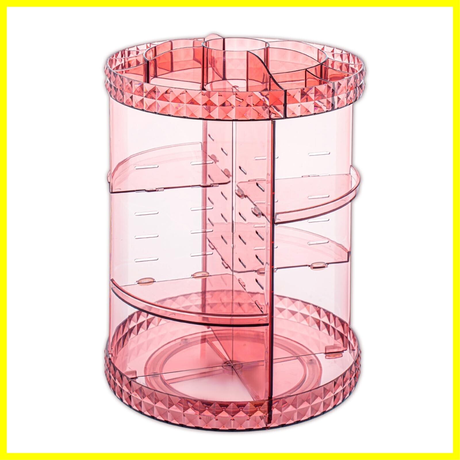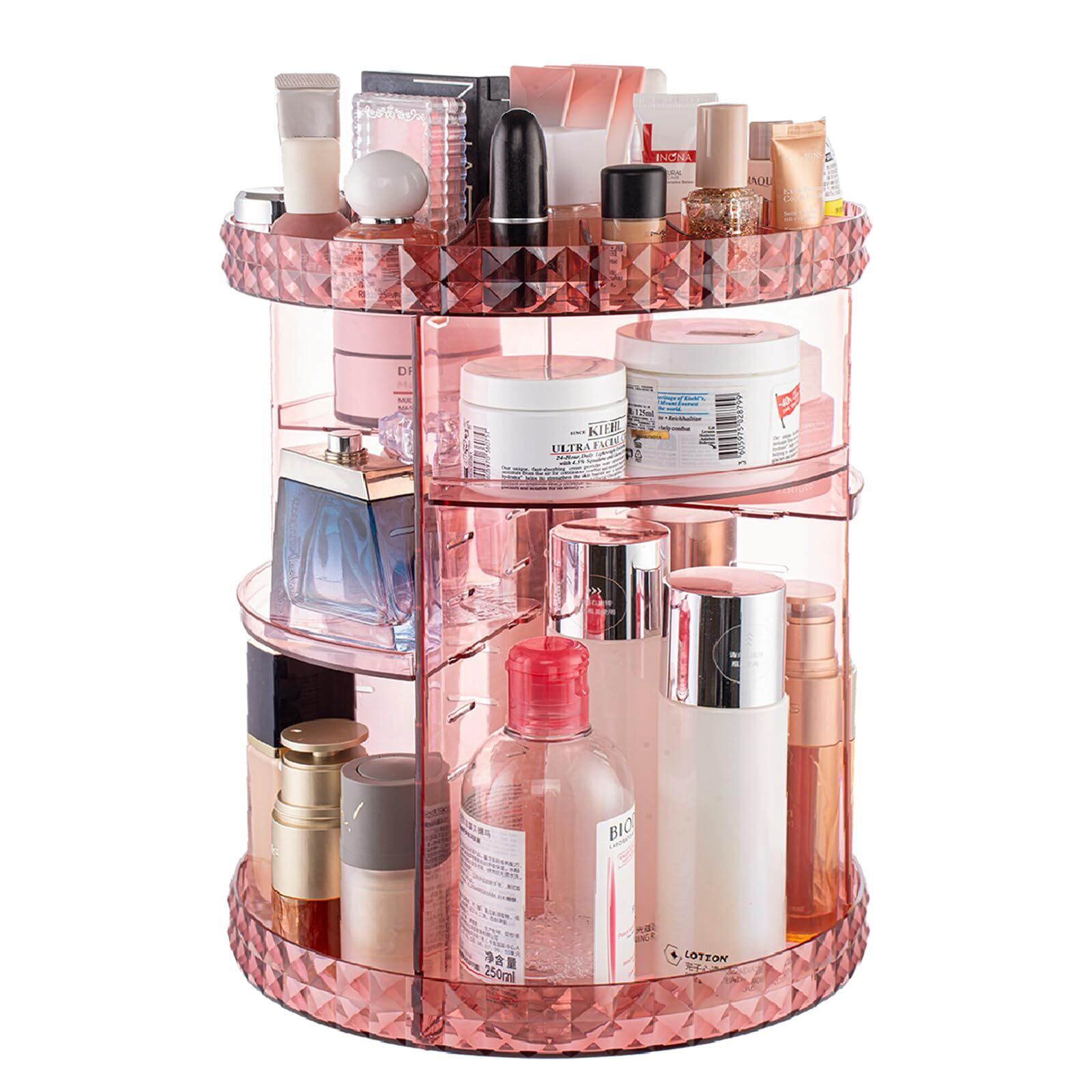 メイクボックス コスメ収納 化粧品収納ボックス アクセサリーケース 小物入れ 大容量 アクリル おしゃれ 仕切り 360回転式 女子へのギフト | ピンク | ダイヤパターン