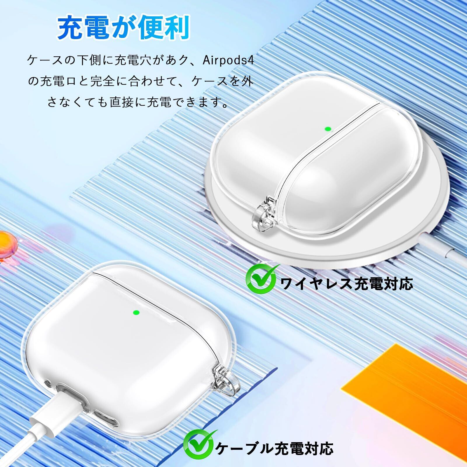 Seefox Airpods 4 ケース【2024年発売】Airpods 第四世代 ケース TPU素材 分離式 可視LEDライト 装着充電可能 エアーポッズ4 カバー 軽量 全面保護 耐衝撃 防塵 キズ防止 カラビナ付き Airpods4 対応 保護ケース (クリア)
