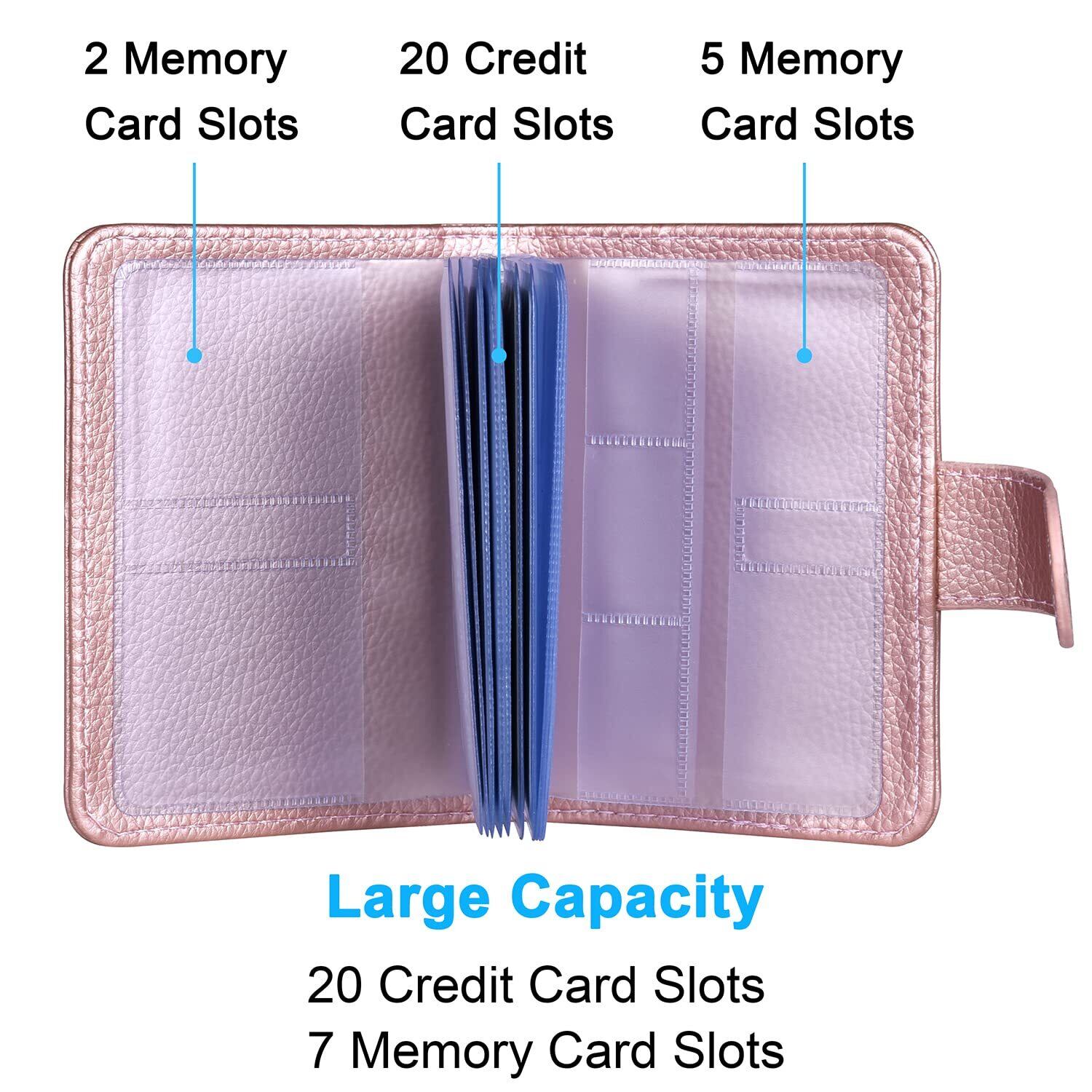 【抜群な収納力】クレジットカード20枚(裏表2枚シートx10ページ)とメモリカード7枚(SD・CF・TF用)を同時にうまく収納できて、わざわざメモリカード専用のケースを購入する必要も要らないです。