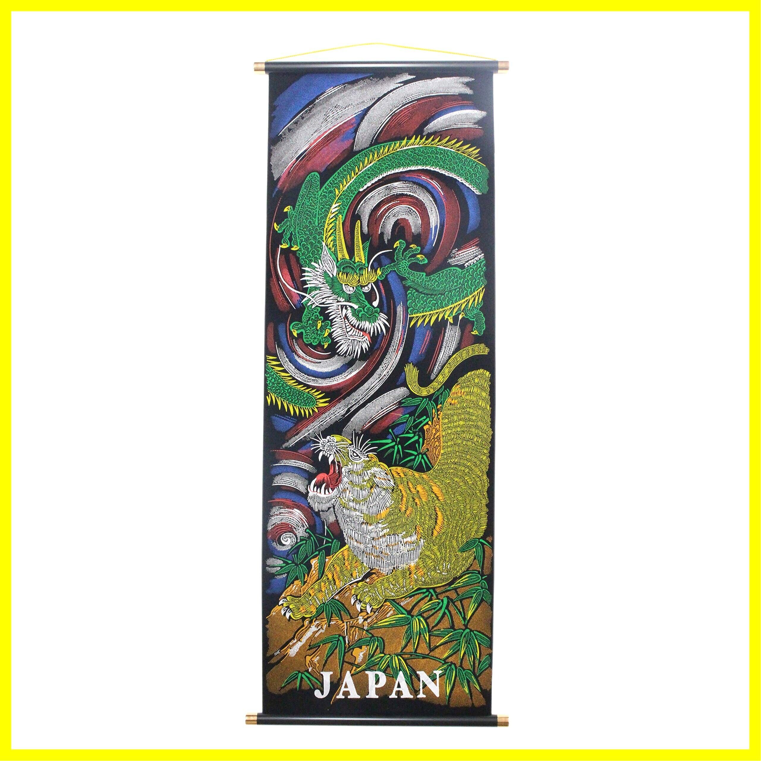 新 日本のお土産 掛け軸 竜虎 中(縦84×横33cm)日本製