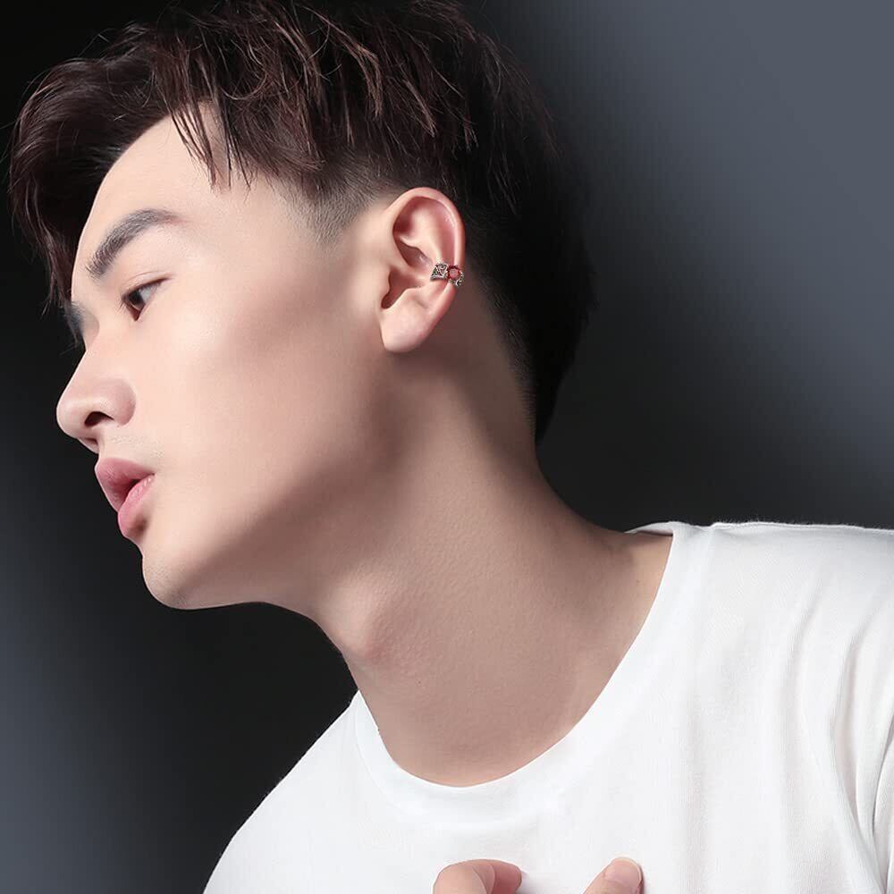 商品の詳細:イヤーカフの外径:約12mm/内径:約10mm。サイズ:幅 7mm 厚さ 1mm;石のサイズ:6mm。素材:シルバー925(刻印有)、合成ガーネット。付属品:精美な包装ケース。