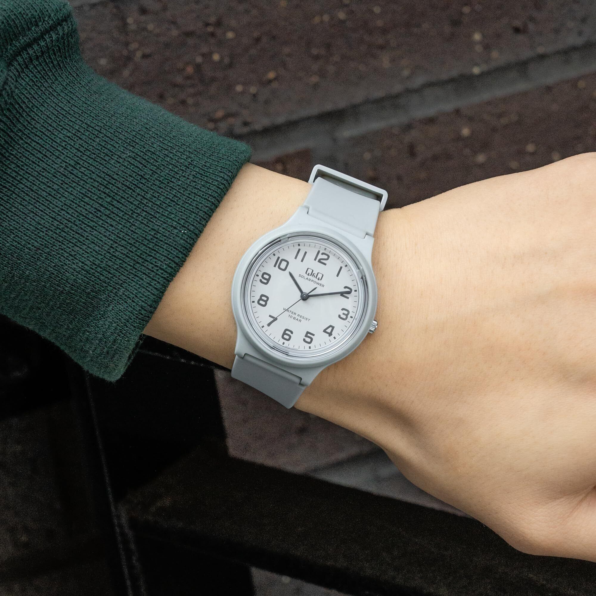 [シチズンQ&Q] 腕時計 キューアンドキュー アナログ ソーラー 10気圧防水 ウレタンベルト E04A-004VK レディース グレー