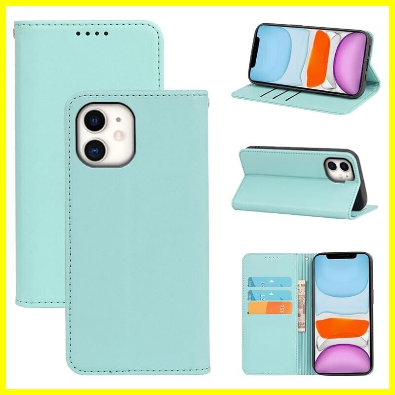 適用 iPhone 11 ケース 手帳型 適用iPhone11 手帳型ケース スマホケース カバー 手帳型 PUレザー カード収納 財布型 耐衝撃 ケース マグネット スタンド機能付き 5色(いphone11 用 ケース 手帳型) (ミントグリーン)