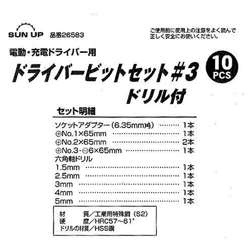 近与(KONYO) SUN UP ドライバービットセット ドリル付き 10pc #3