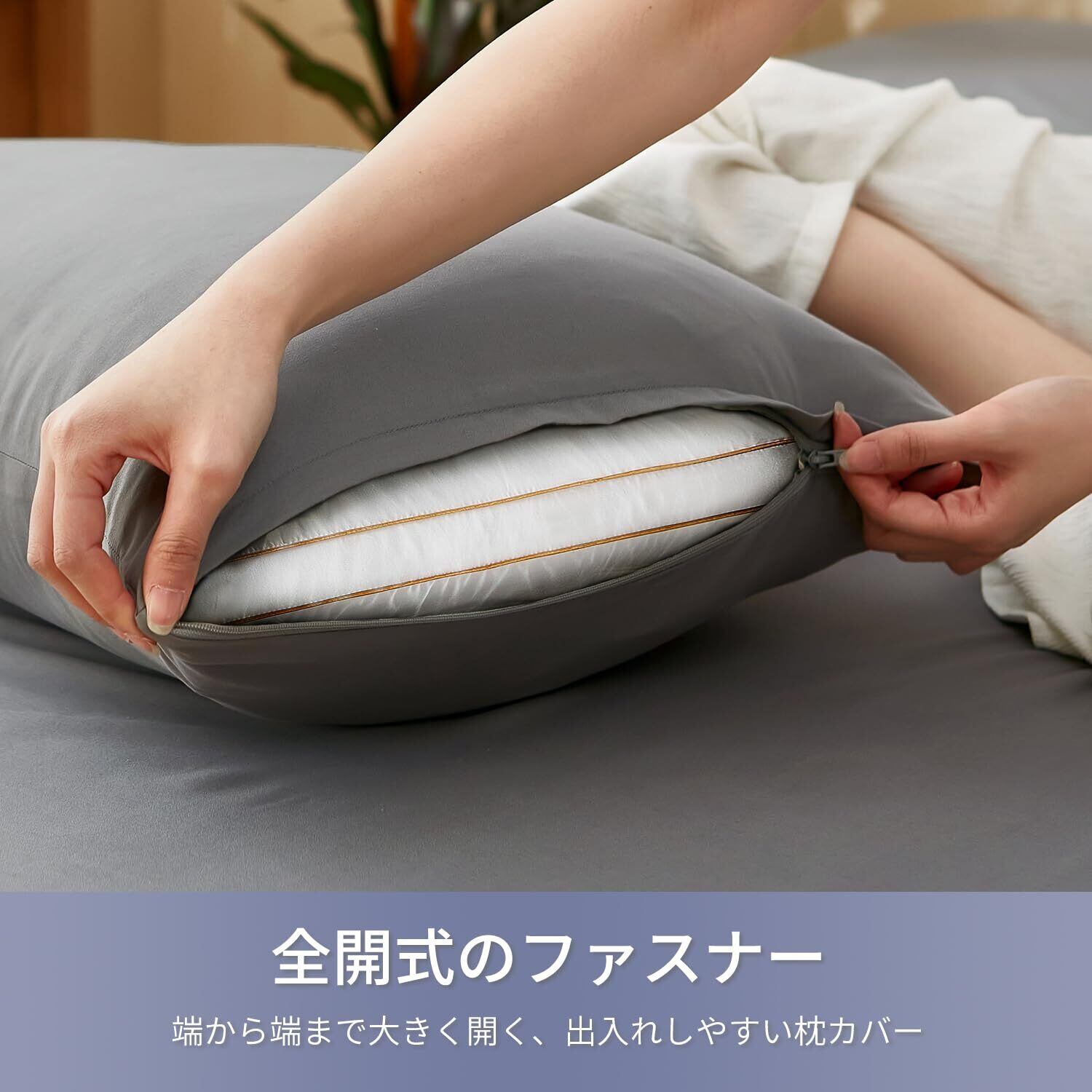 <耐久性を強化>:このピローケースは、耐久性を高めるために、縫い目でより強力なステッチ構造を備えています。頑丈な全開ファスナーを採用するため、使いやすくて、スムーズです。