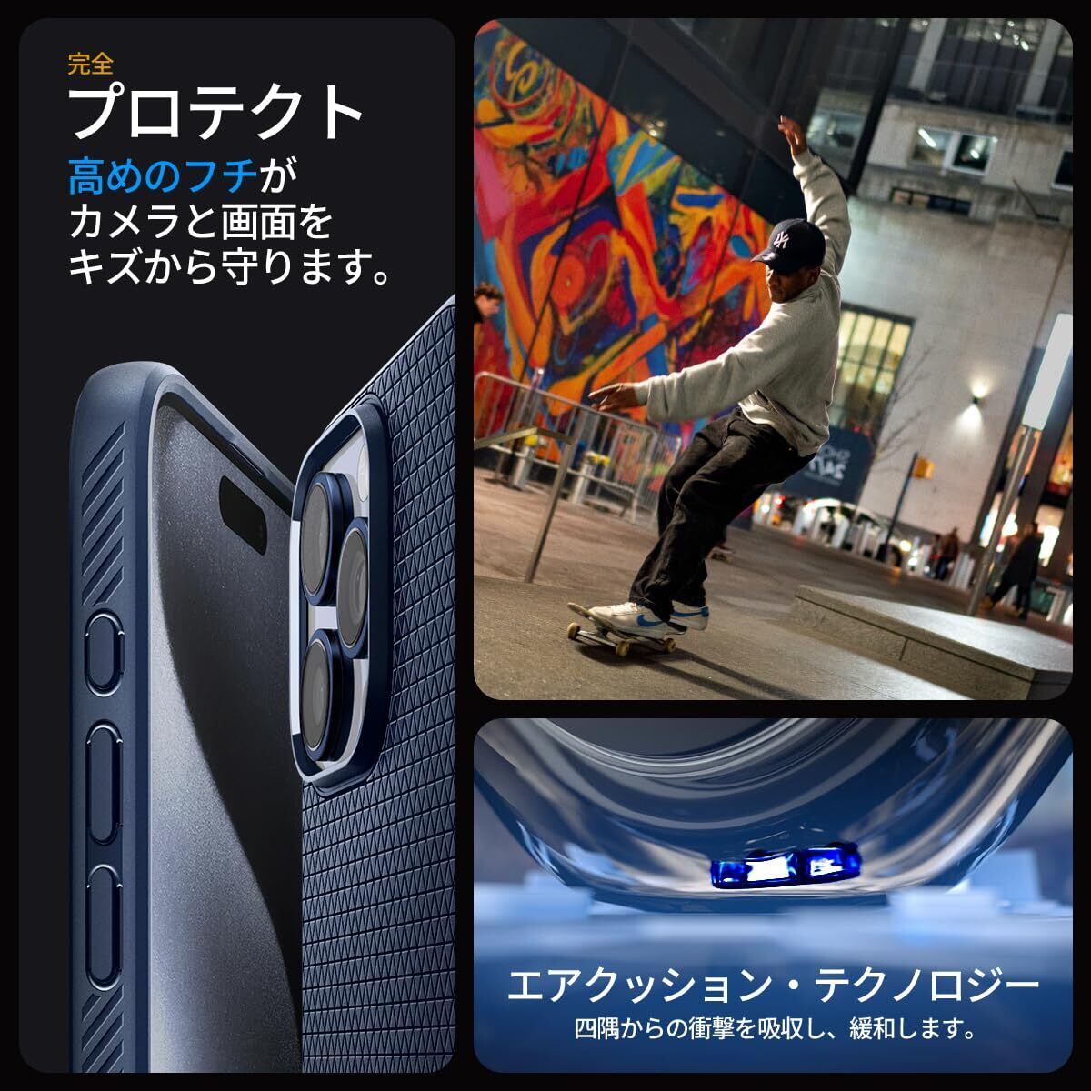 Spigen 【創業18年の技術力】 iPhone 15 Pro ケース 耐衝撃 薄型 ストラップホール 軽量 さらさら 米軍MIL規格取得 2重構造 レンズ保護 指紋防止 擦り傷防止 マット仕上げ ワイヤレス充電対応 リキッド・エアー ACS06705 (ネイビー・ブルー)