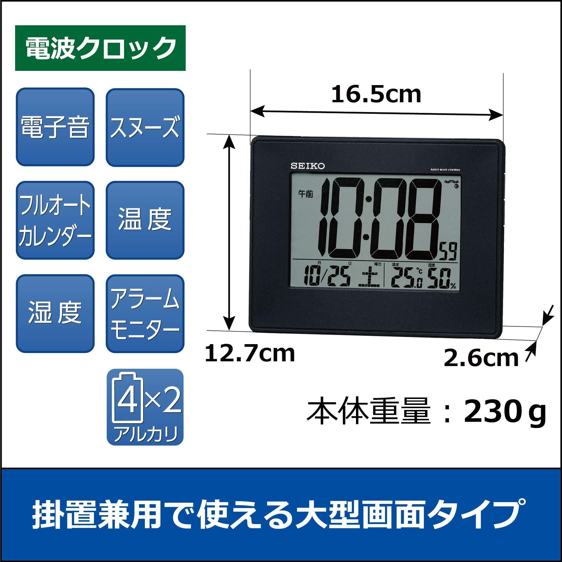 セイコー クロック 目覚まし時計 電波 デジタル 掛置兼用 カレンダー 温度 湿度 表示 大型画面 黒 メタリック SQ770K SEIKO