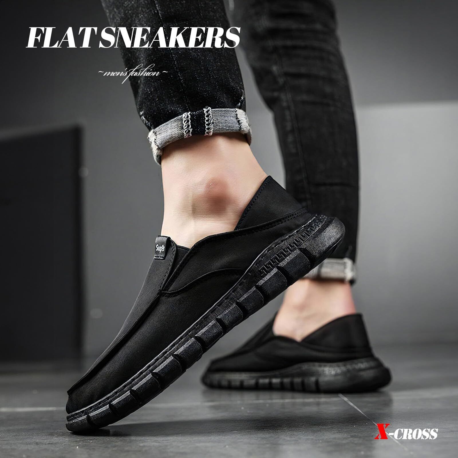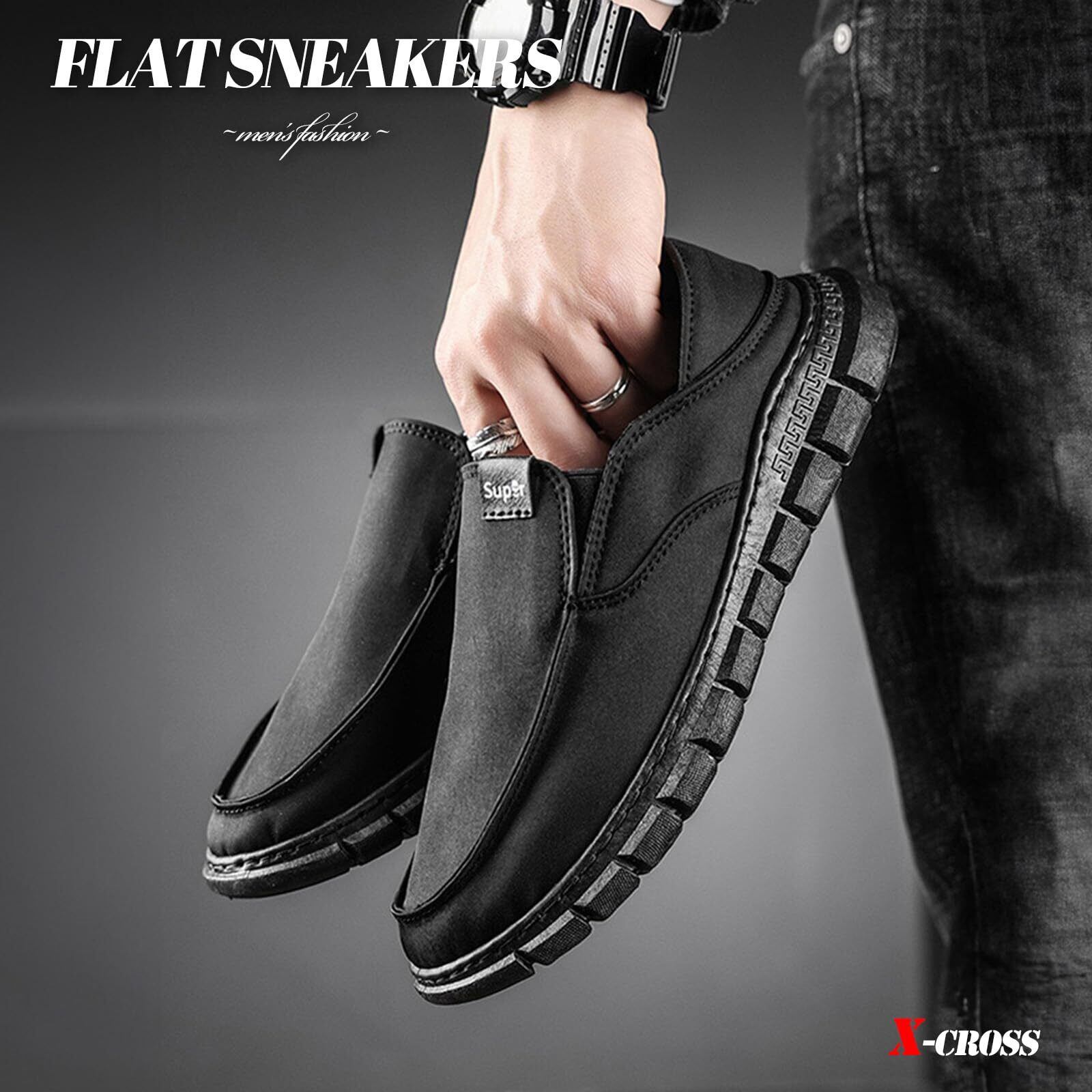 [X-cross] クロス スニーカー フラット 紐なし かかと踏める カジュアル アウトドア ビジネス オフィス シューズ