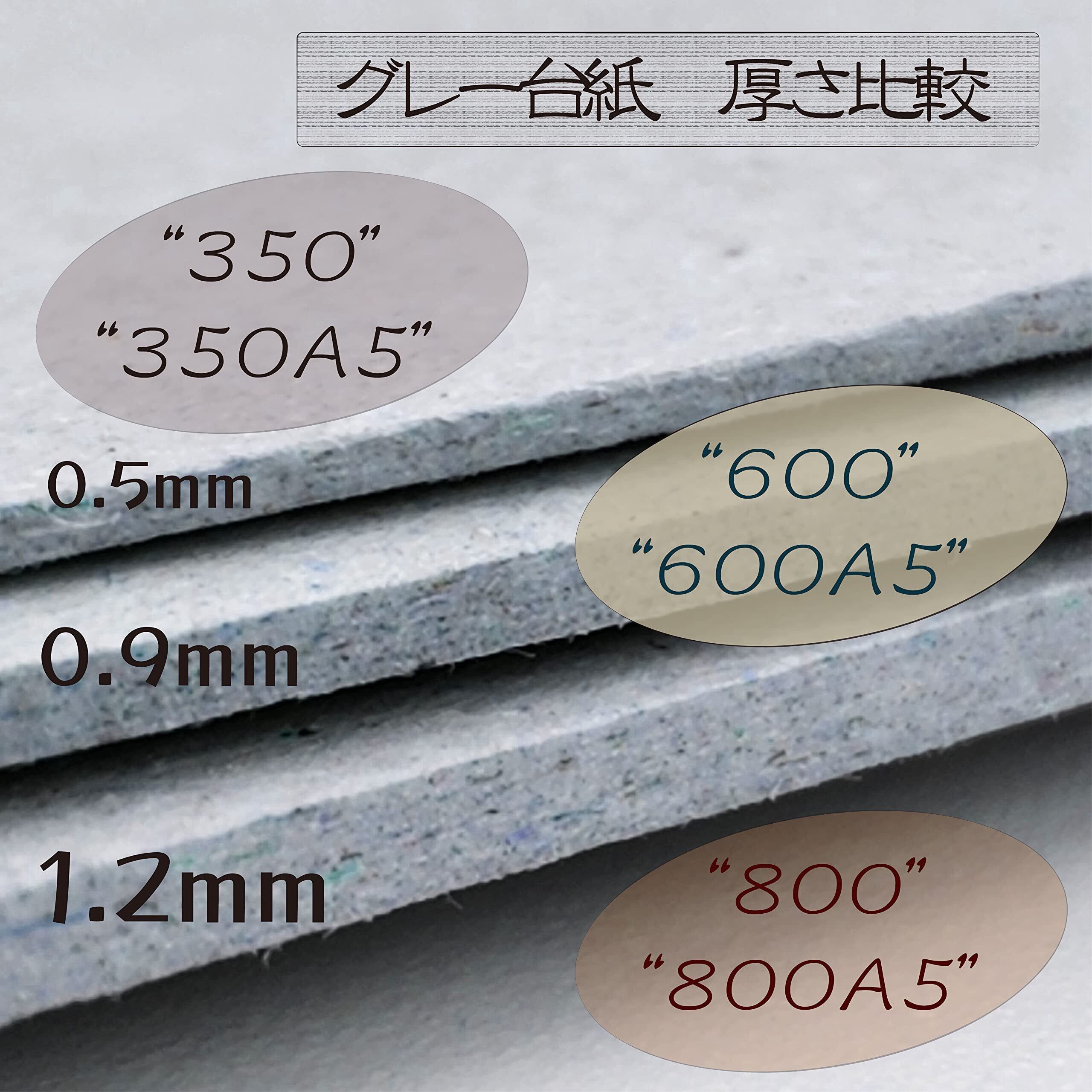 「グレー台紙」の厚さは3種類(”350”・”600”・”800”)、サイズは2種類(A4・A5)あります。