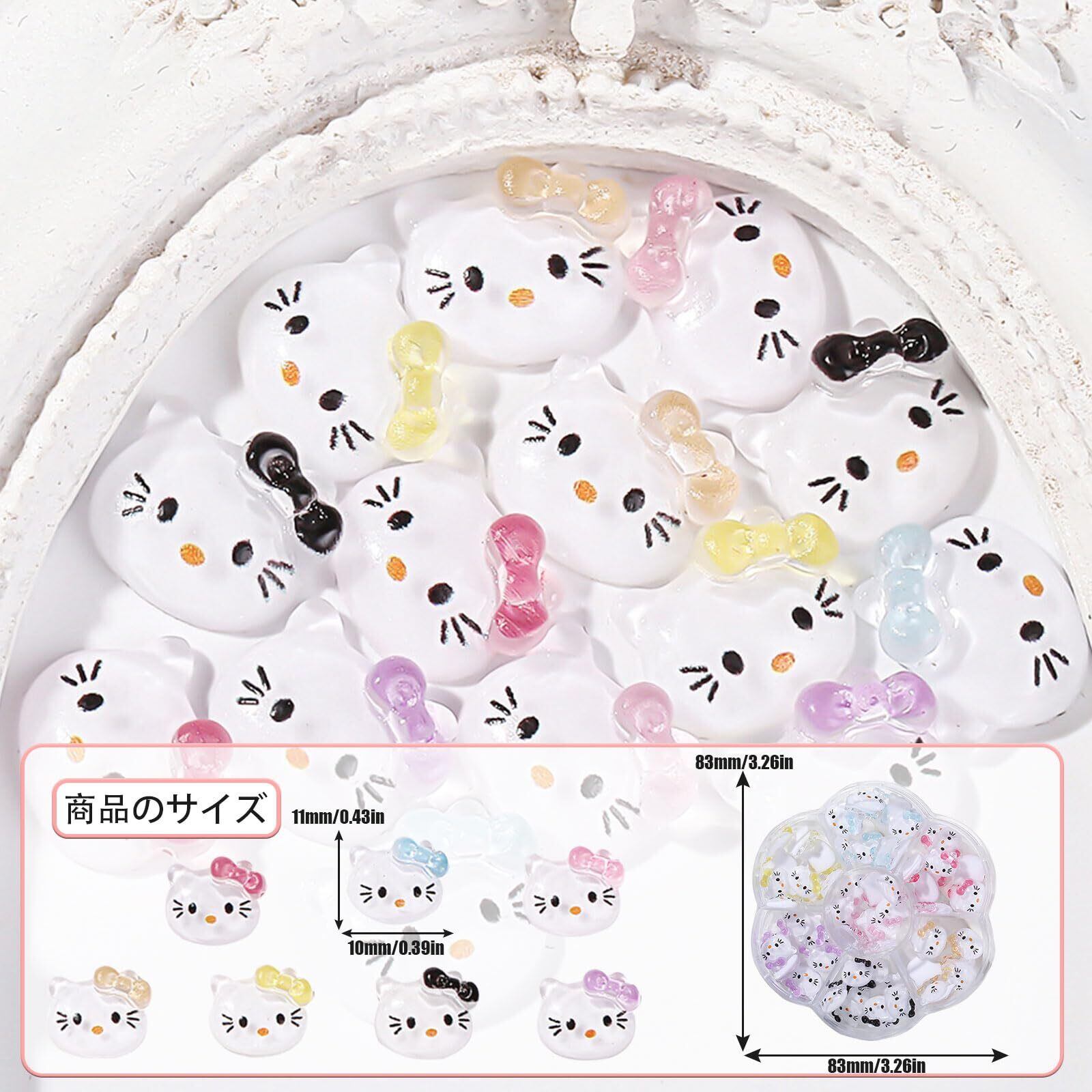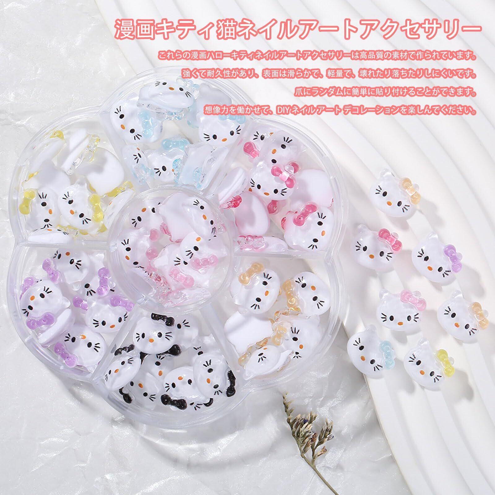 【ネイルパーツ セット】キュートでオシャレなキティネイルパーツ。家庭用とプロのネイルサロンに適していて、ファッショントレンドの女性のネイルデザインにぴったりです。