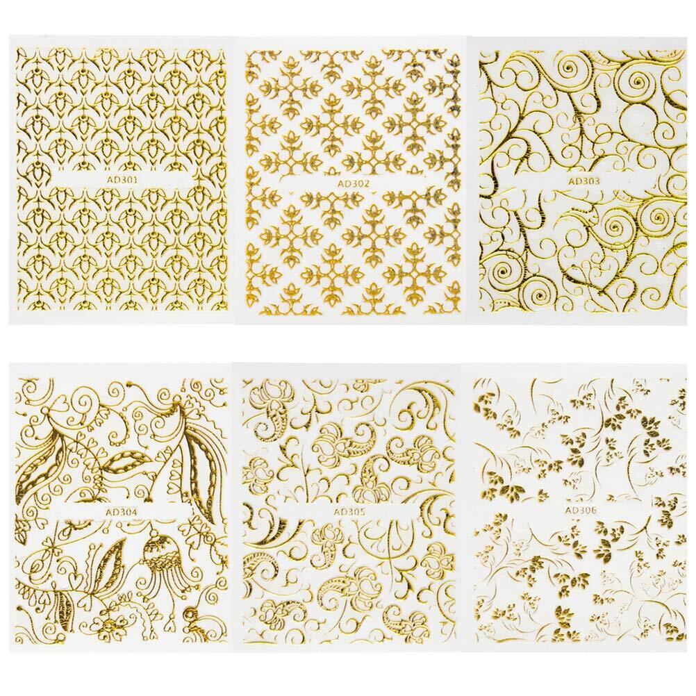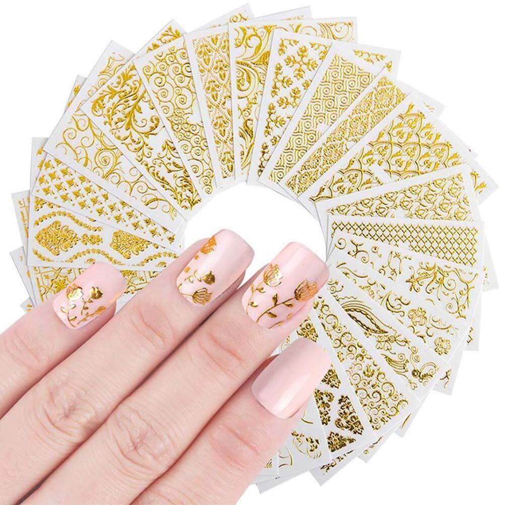 FRCOLOR ネイルシール ゴールド 3D 極薄ネイルステッカー 20枚セット 手の爪 レース花 ネイルデザイン 貼るだけ簡単 ネイルアートシール 爪に貼るだけ 結婚式 デート パーティー用 ジュエリーネイルアート