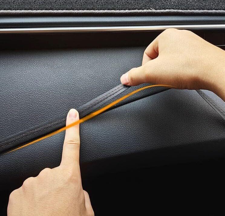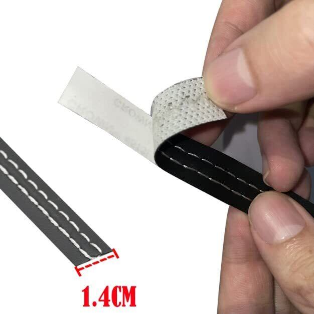 ダブルステッチシート カーインテリアレザーステッチ 内装 ドレスアップ シール スポーツ車仕様 汎用 カスタム パーツ 車 おしゃれ ステッカー デカール 革モールテープ ダッシュボード/インテリアパネル などの装飾に (ブラック)