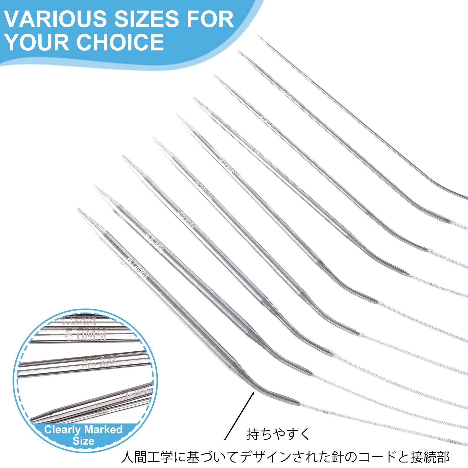 【高品質の編み針】くるくる一方向に編むだけで、簡単に作品が作れる輪針です。耐久性のあるステンレス製の針は長時間の使用に耐えられ、針の糸の接続がスムーズです。使いやすく、編みやすい